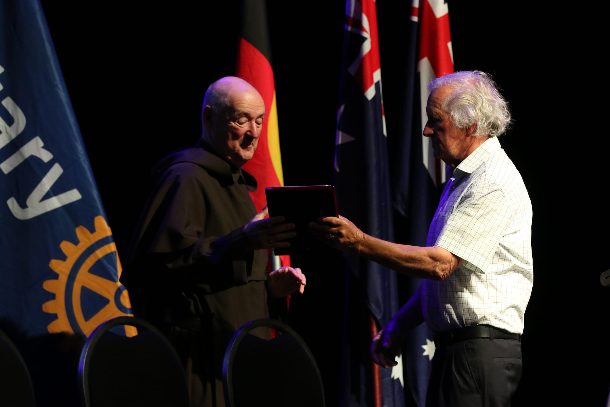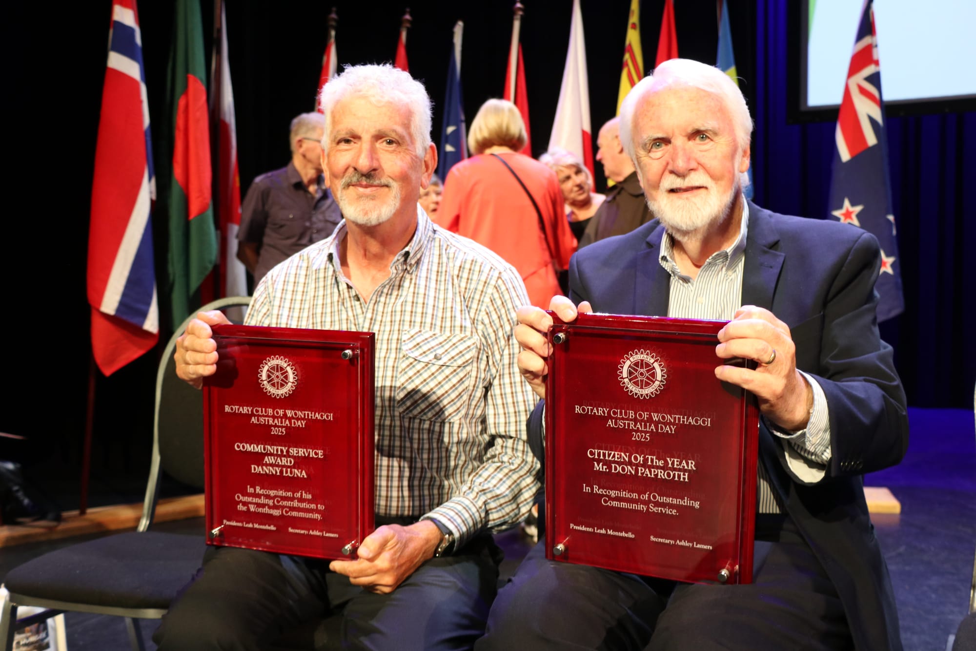 Fun banter erupted between the duo when Rotarian and MC Brett Tessari welcomed Mr Paproth to the stage to present a Community Service Award to Danny Luna.