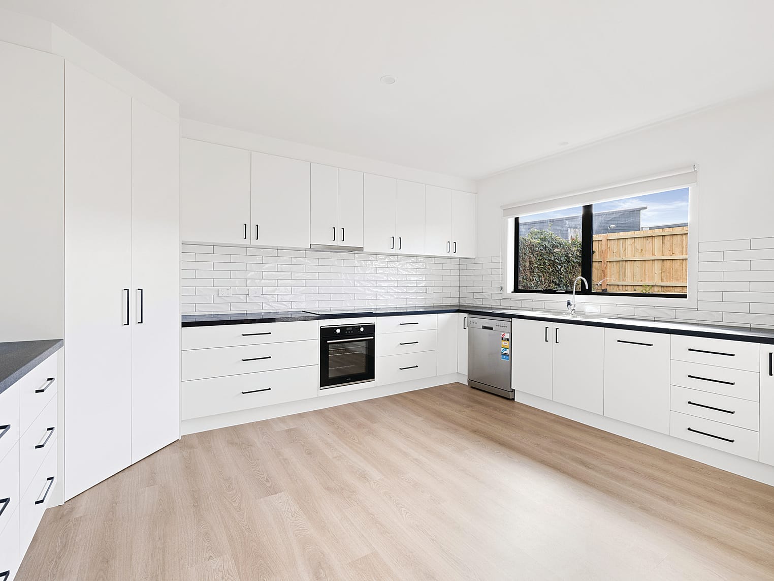 A functional and spacious kitchen awaits you with modern appliances including an electric oven, induction cooktop and dishwasher. There is plenty of cupboard space with a walk-in pantry. The open plan kitchen and dining leads out to an undercover alfresco area perfect for entertaining. Each unit has a separate living area with plenty of natural light.