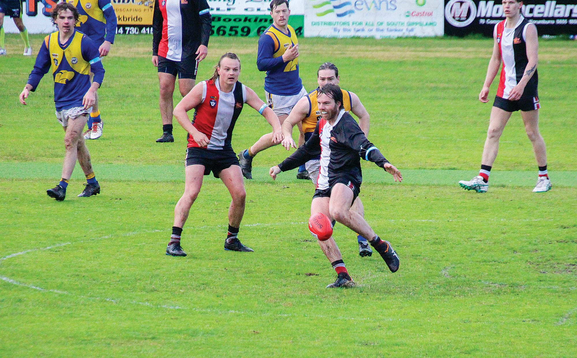 Lachlan Pratt led Ellinbank’s goal-scoring, kicking six for the day. Lucas Lee was Nyora’s best player for the day and was the first to get a score on the board for the Saints.