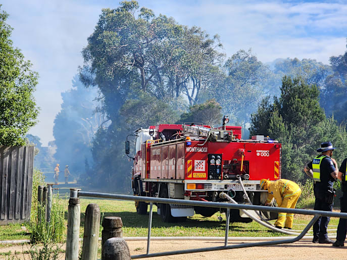 WONTHAGGI Fire Brigade, paramedics and police are currently on the scene of a fire in Wonthaggi Wetlands at the end of Poplar Street where a column of smoke can be seen rising through the trees.