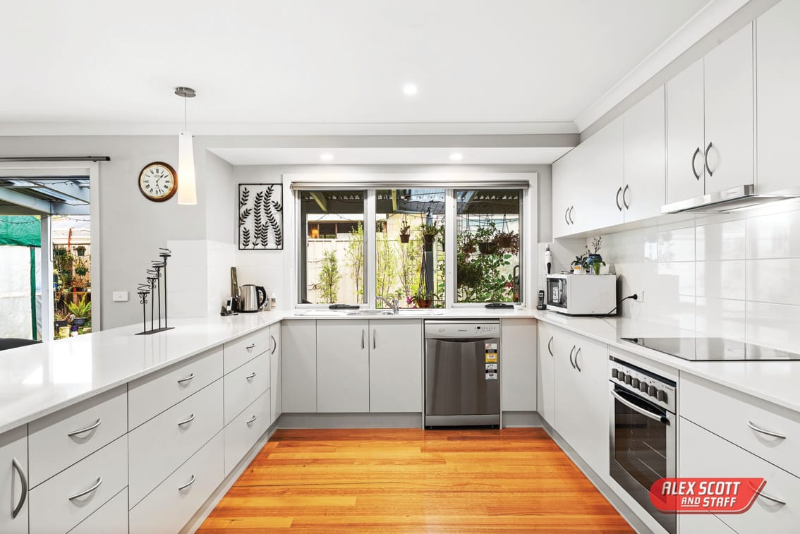 The spacious open-plan kitchen includes large stone bench tops, electric cooktop and dishwasher. Adjoining the kitchen is the family and dining area with sliding doors out into the covered Alfresco which provides the perfect space to entertain family and friends.