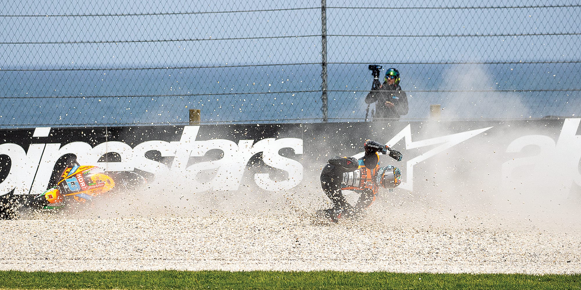 In Qualifying One, Jack Miller overcame adversity to record the second fastest time in this session from Firmin Aldeguer with both riders going through to the second qualifier. On a dry track, Johann Zarco dropped the Honda at turn 10 in a desperate attempt to run down Miller’s time. The Frenchman was less than impressed giving the battered machine a beating of his own!