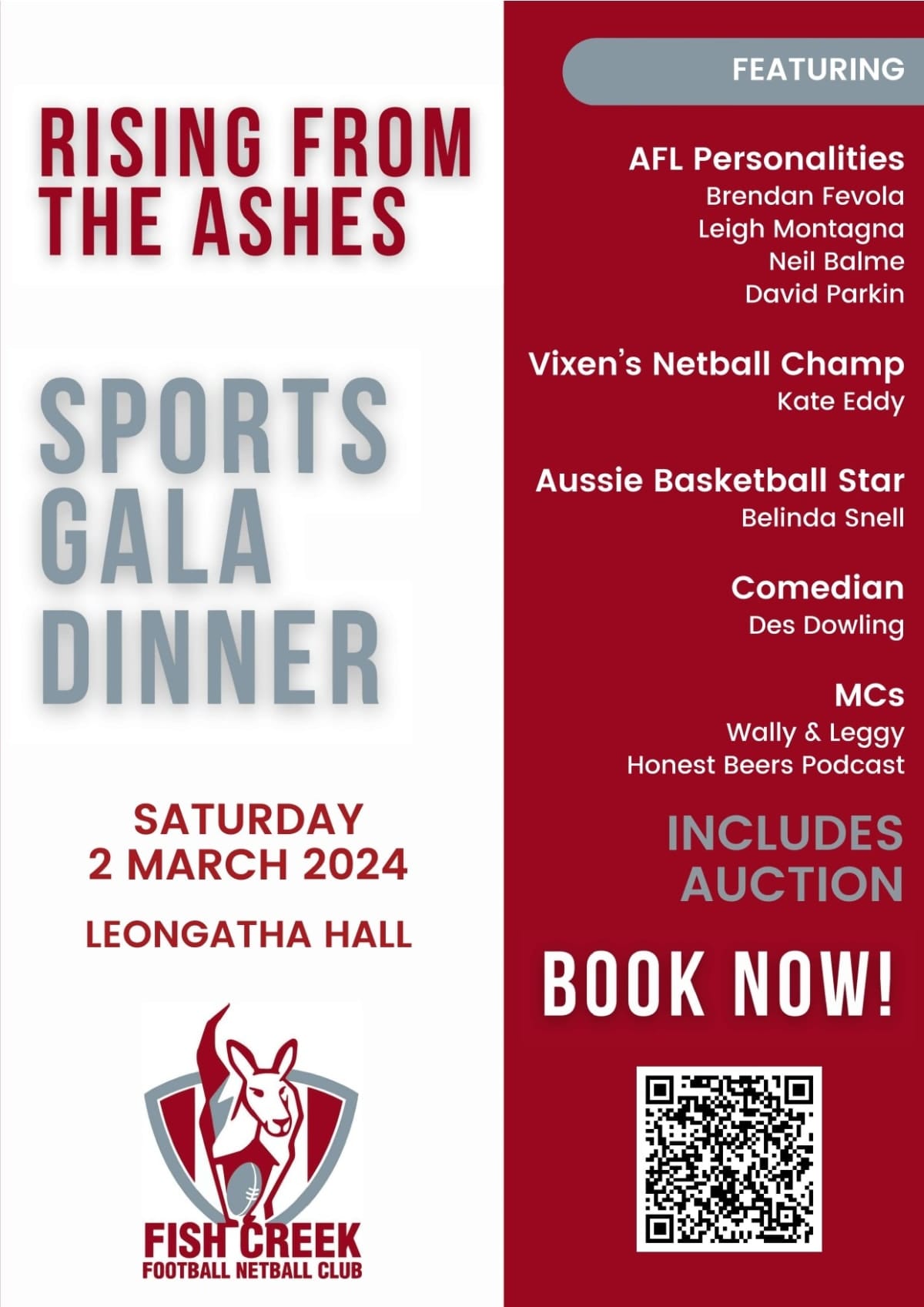 The ‘Rising from The Ashes’ Sports Gala Dinner, which will be held at the Leongatha Hall, has already attracted unprecedented attention and support from throughout the sporting world.