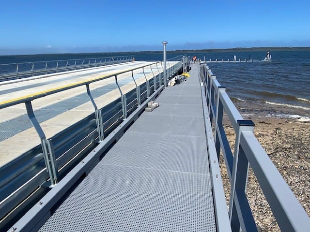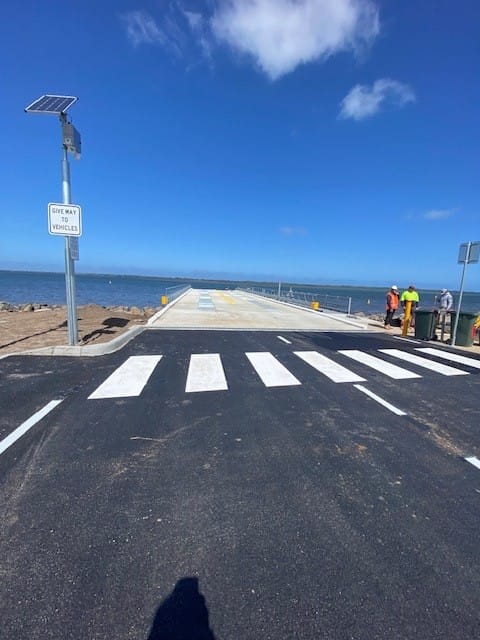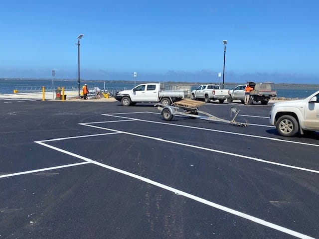 The $5.45 million Mahers Landing project includes guard rails, a centre lane divider to make reversing easier and safer, rubber fenders on the jetty to protect boats, and solar lighting so boaters can launch before dawn or after dark.