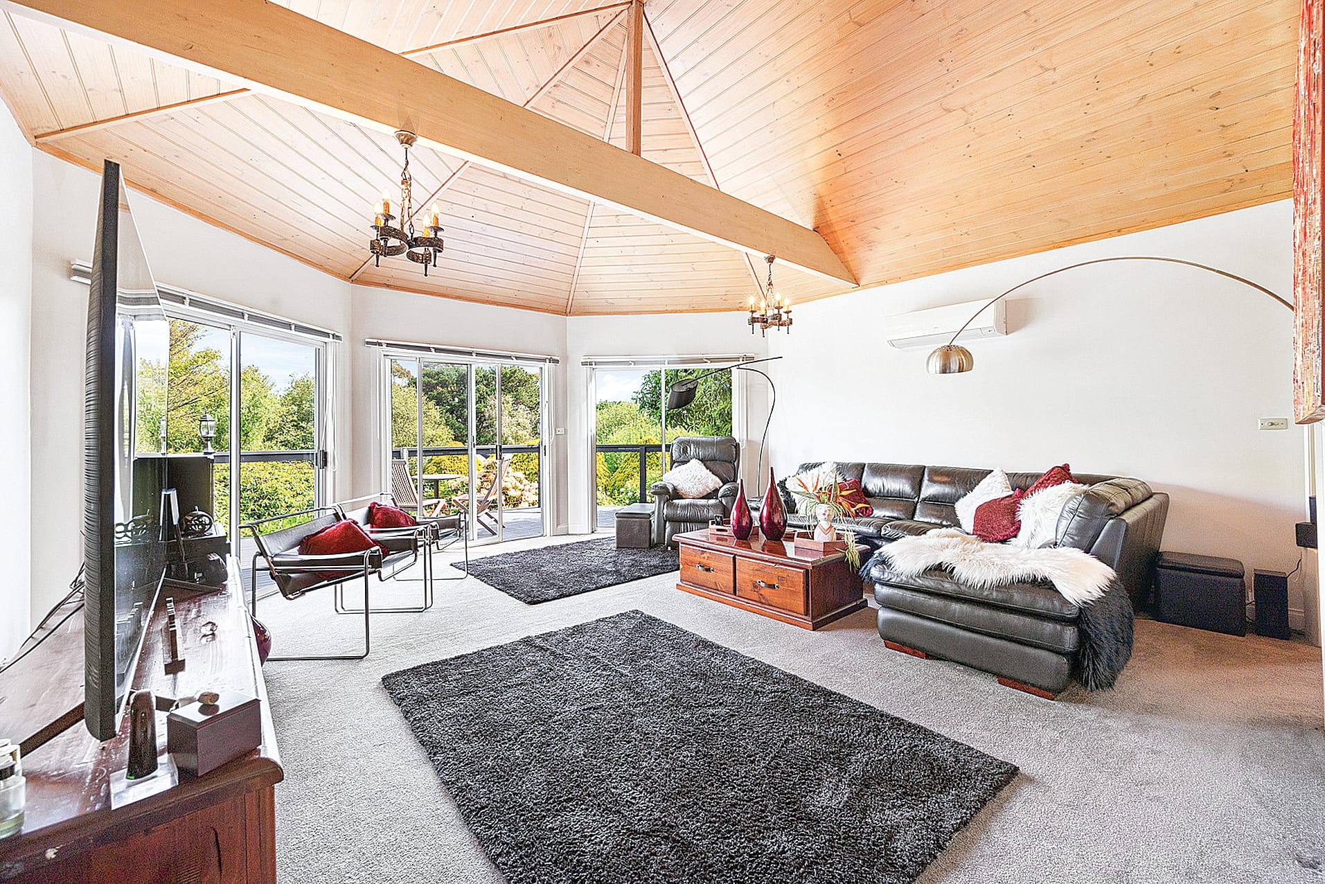 Step inside to discover a beautifully designed interior that seamlessly blends classical architecture with cozy living. The elegant kitchen boasts high-quality finishes including 900mm ‘Falcon’ oven and stove top making it a joy to cook and entertain. Adjoining the kitchen is the outdoor alfresco area that overlooks parts of the amazing gardens. The spacious living room adjoins another living area complete with a stunning fireplace, perfect for cozy evenings spent with loved ones. The kitchen and living areas all boast beautiful, raked timber ceilings.