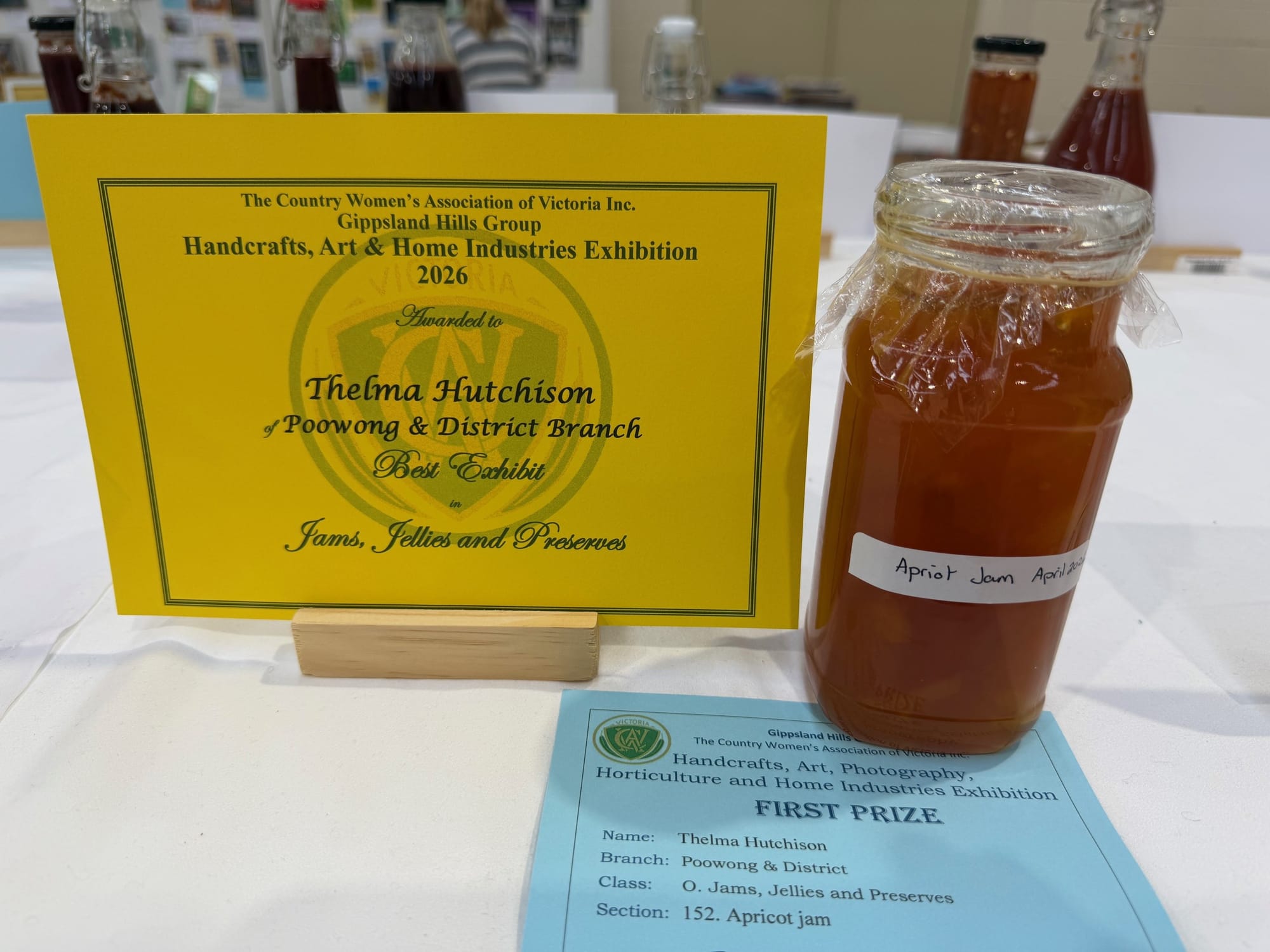 - Jams, Jellies and Preserves Thelma Hutchison (Poowong & District) (Apricot jam) (Section 152, Entry No. 1)