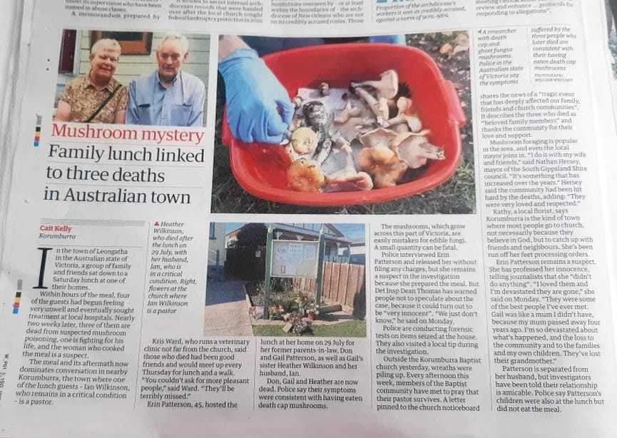 FROM the Middle Eastern-based news service Aljazeera to the Irish Times and every media outlet in between, there has been blanket coverage of the mystery surrounding the trio of Korumburra deaths, allegedly as a result of eating poisoned mushrooms, in Leongatha.