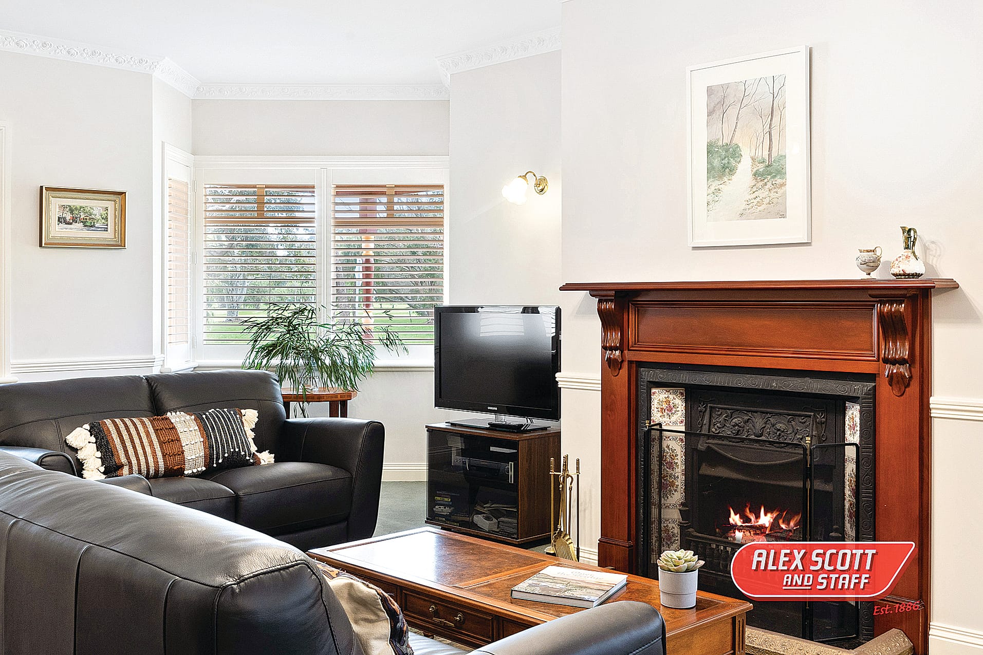 Designed to accommodate a big family, this large north-facing home offers open-plan living with nine-foot ceilings. As you walk through the entrance you are greeted with a light bright sunny living space and formal dining area with bay windows showcasing the uninterrupted views of the golfers playing the ninth hole. The open fireplace with a period timber mantel piece is a real showcase.