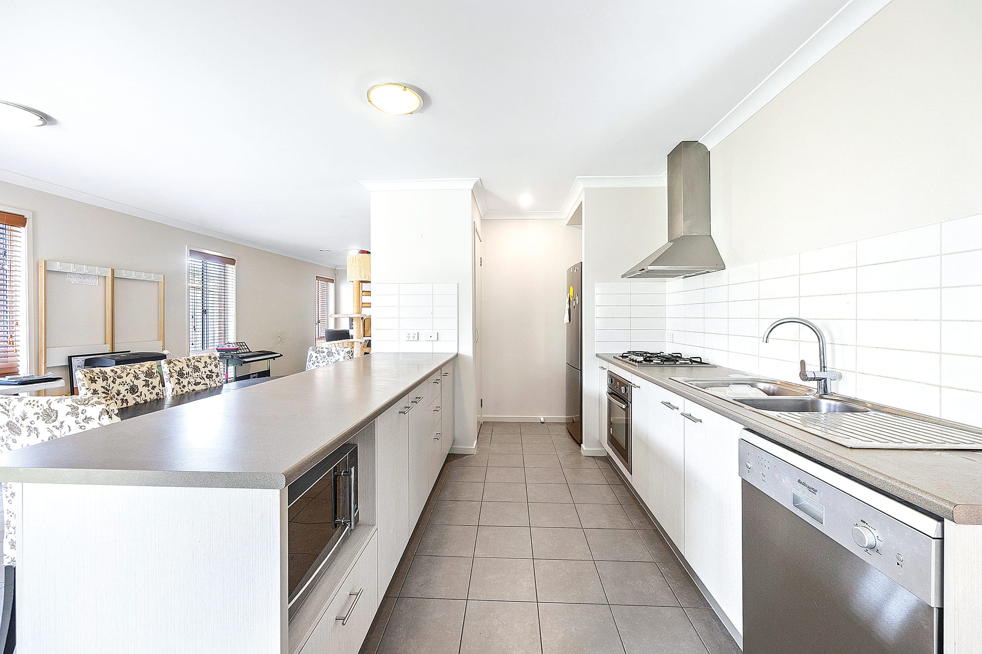 A spacious and open plan living area wraps around to the dining and kitchen. The well-appointed kitchen is complete with a gas cook top, electric oven, dishwasher plus a pantry with great storage space.