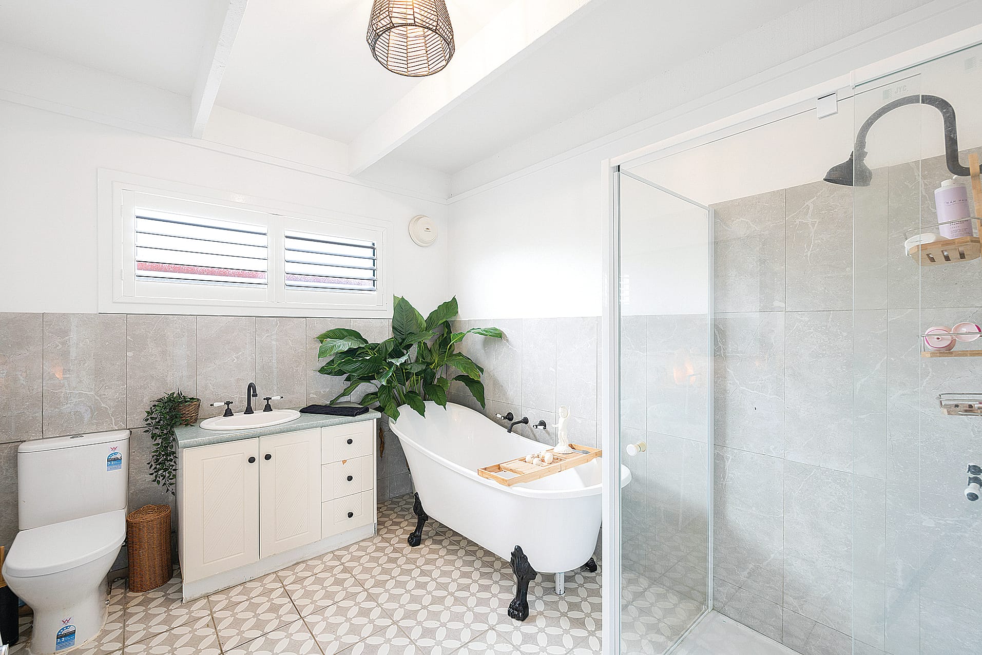 The master bedroom is a retreat in itself, adorned with plantation shutters and boasting an enviable walk-in robe. Two additional bedrooms feature built-in robes, providing ample storage and comfort. The completely new bathroom is a sanctuary of luxury, offering a 1200mm shower and a stunning clawfoot bath. The addition of a second toilet enhances practicality.