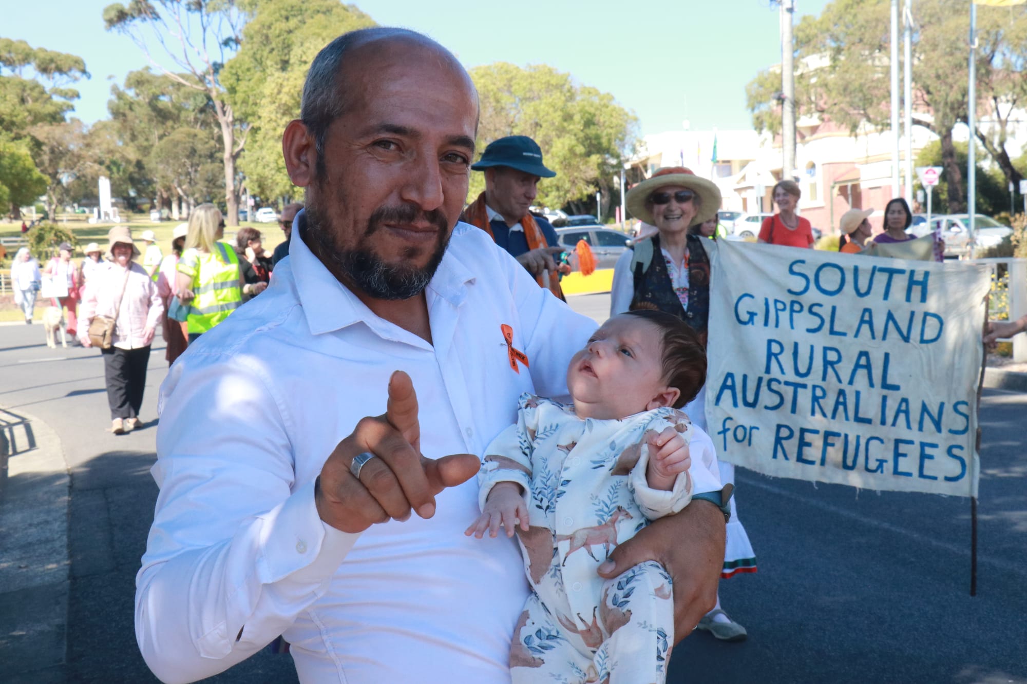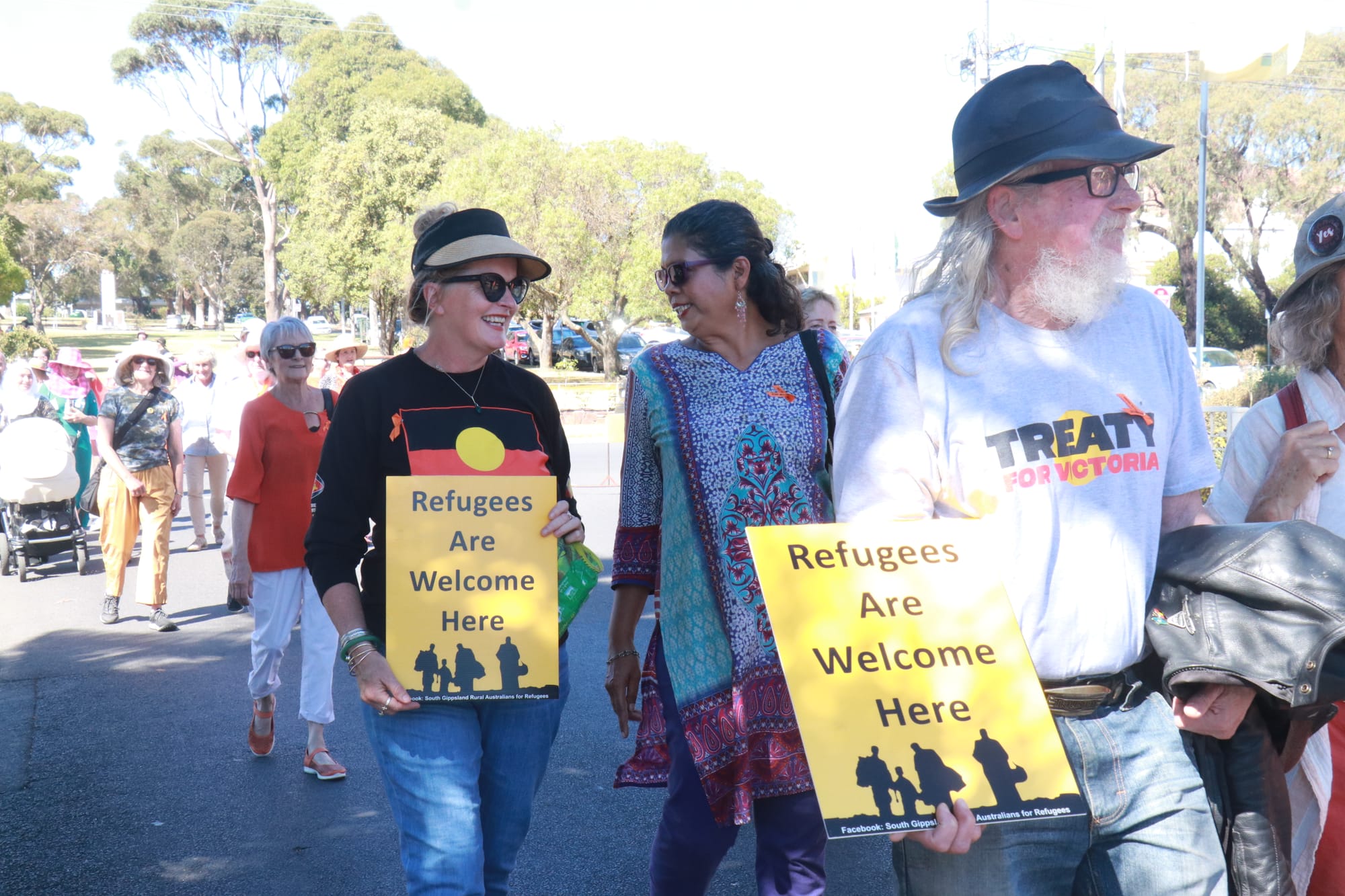 Stella Hitchin’s of the Men’s Shed led the walk with fellow community members and shared how grateful she is to be a part of a town that welcomes refugees.
