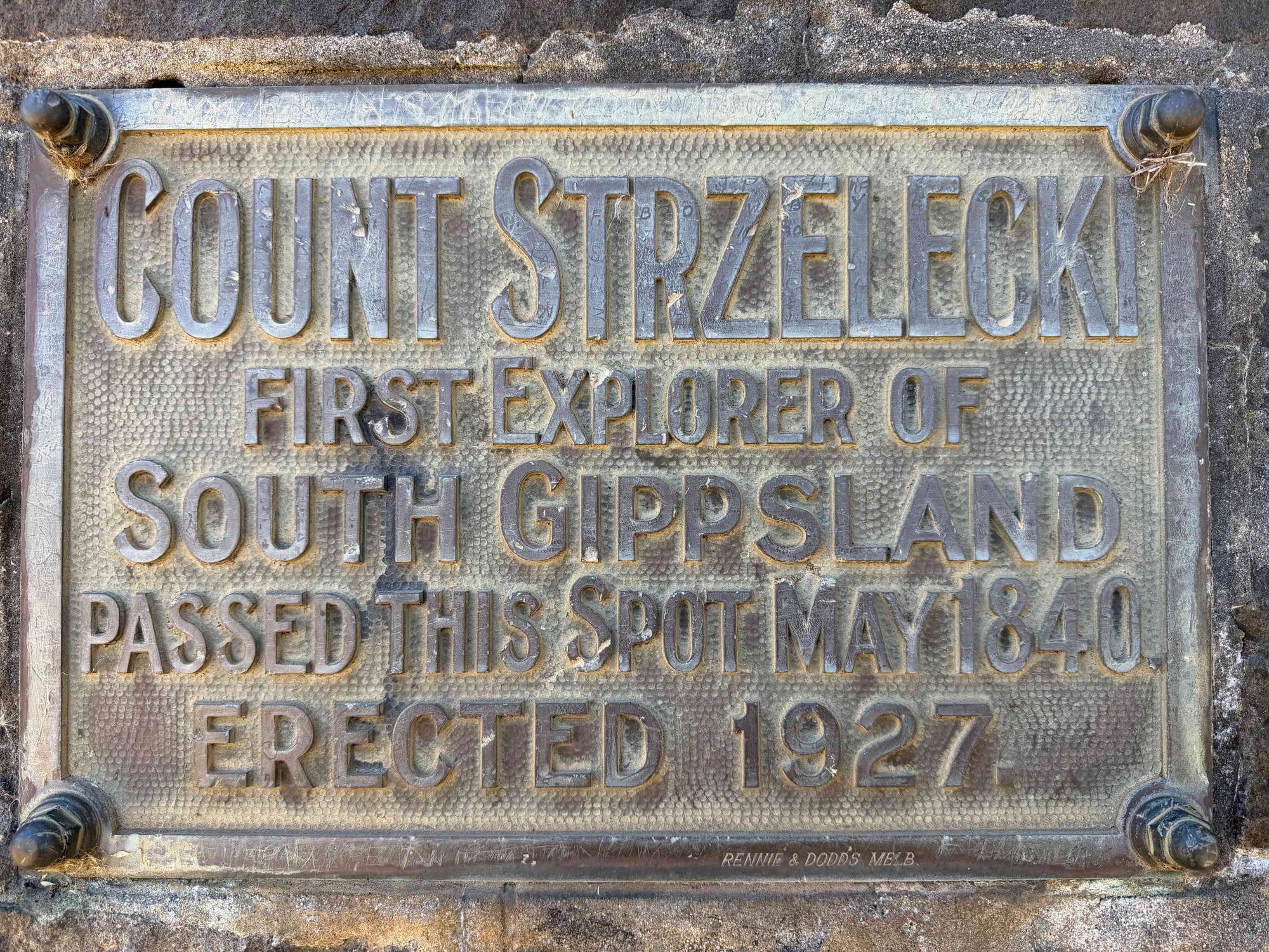 A monument near the corner of Korumburra-Warragul Road and Korumburra-Bena Road marks the spot where Count Paul Strzelecki passed by in 1840.
