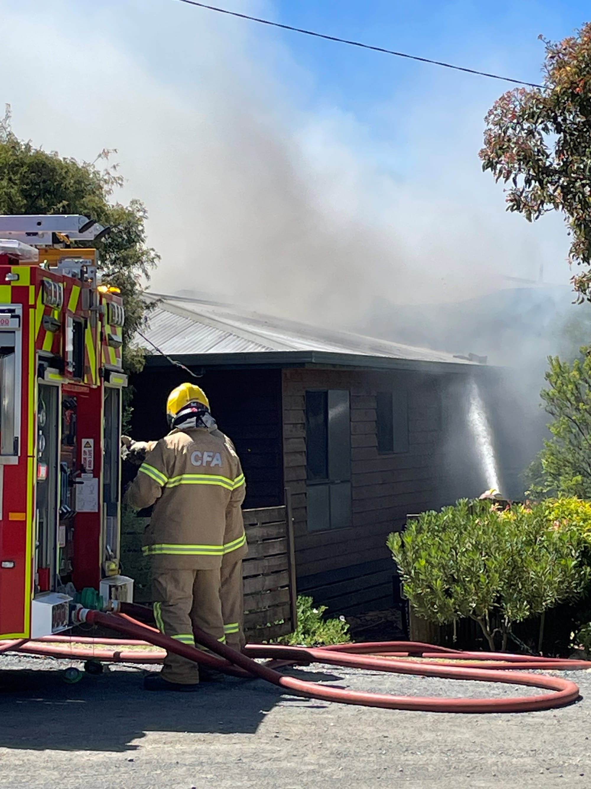 Local CFA crews arrived on scene after the alert was raised by neighbours around 12.53pm.