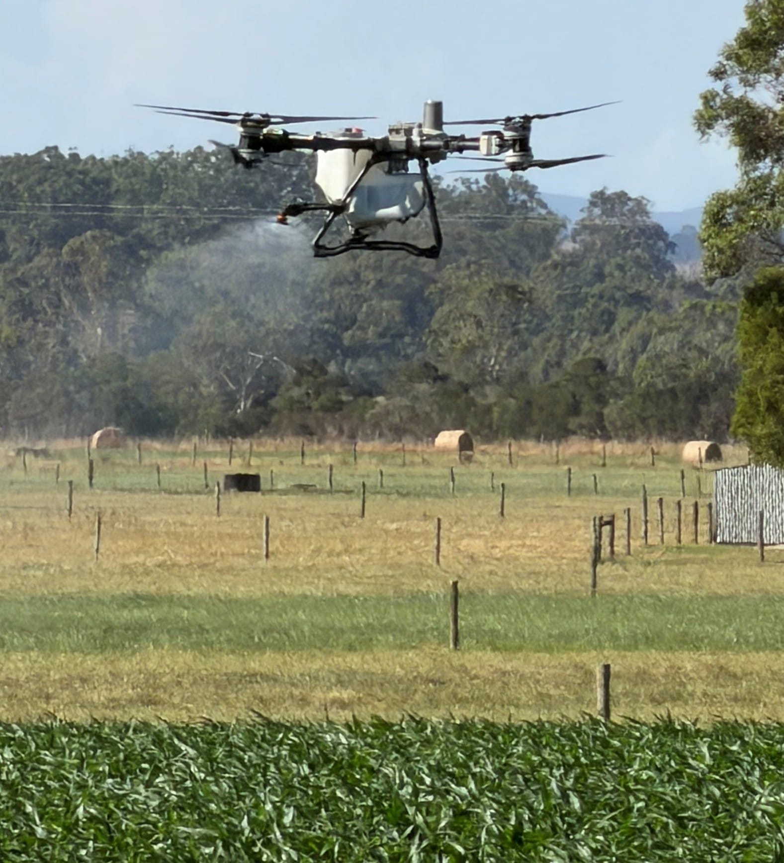 This big DJI T100 drone made quite a sight as it worked its way up and down a lush green crop of maize at Leongatha South last week.