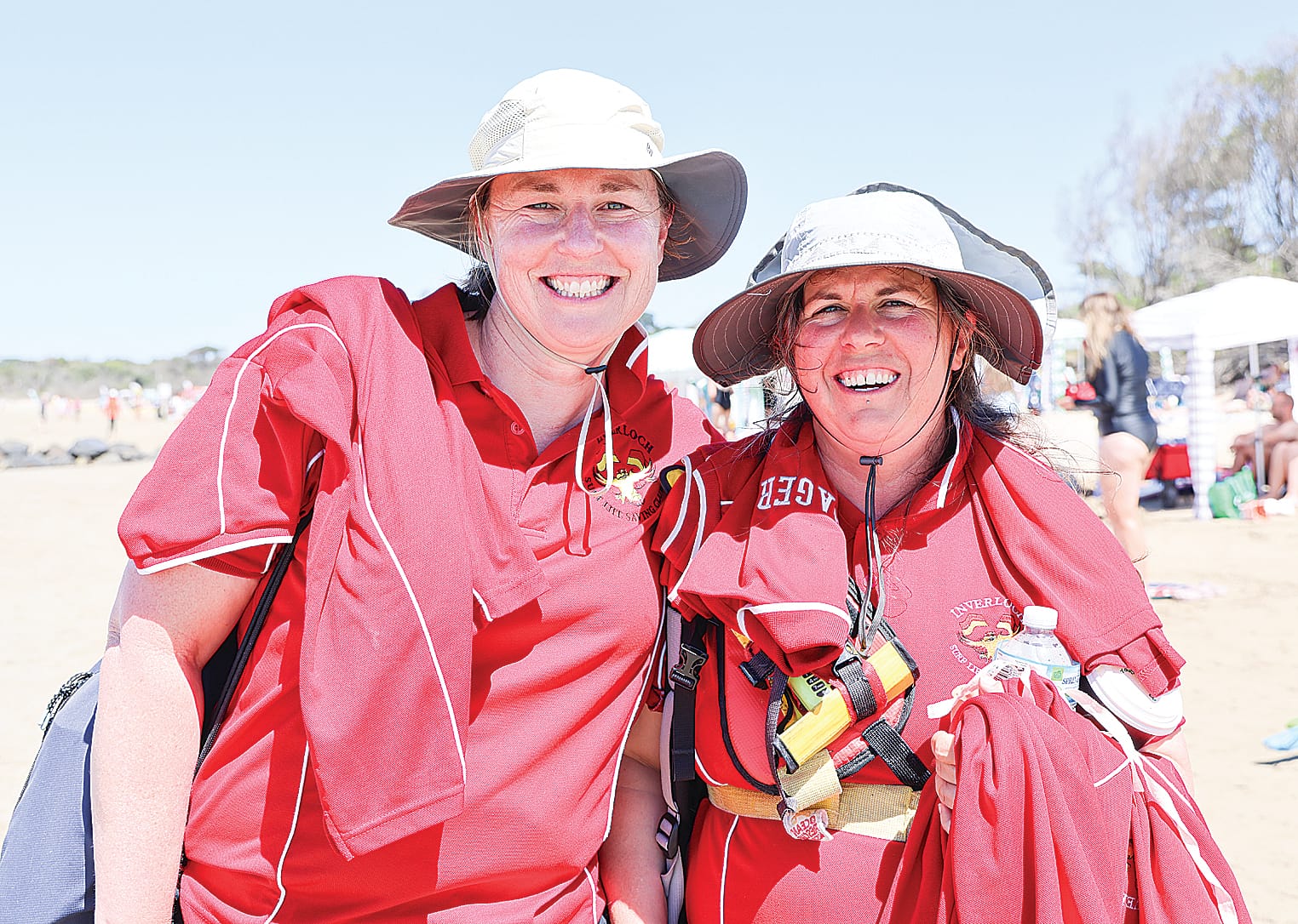 On the hottest and one of the busiest days of the year, Inverloch lifeguards Milla Laub and Sophia Hungerford were out on the beach encouraging everyone to swim safely.