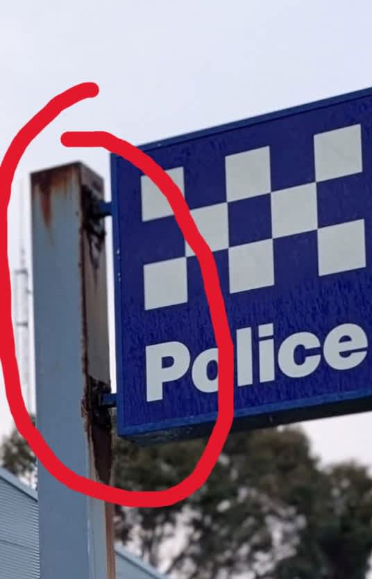 And, also this from an Inverloch builder about the rusted ‘police’ sign above his head in the photo: