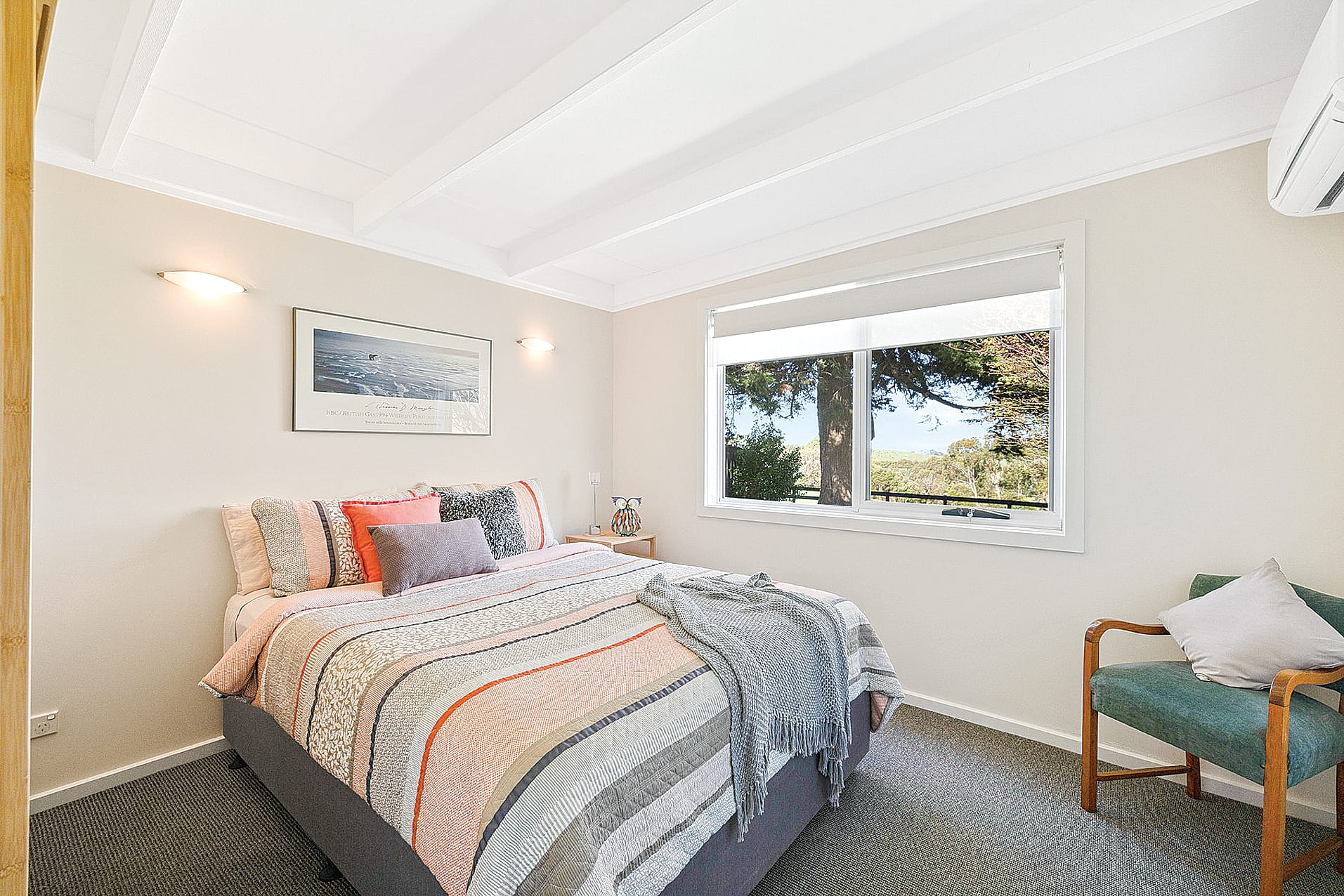 This home's northern orientation ensures that you'll wake up to stunning rural views from each of the three bedrooms, all thoughtfully equipped with their own split-system air conditioners.