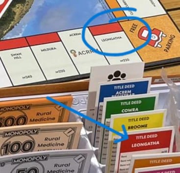 Alongside Swan Hill and Mildura in the ‘red’ property set, which featured ‘Strand’, ‘Fleet Street’ and ‘Trafalgar Square’ on the original English board, Leongatha is one of few regional towns across Australia to get a square of its own on the rural and remote medicine game board.