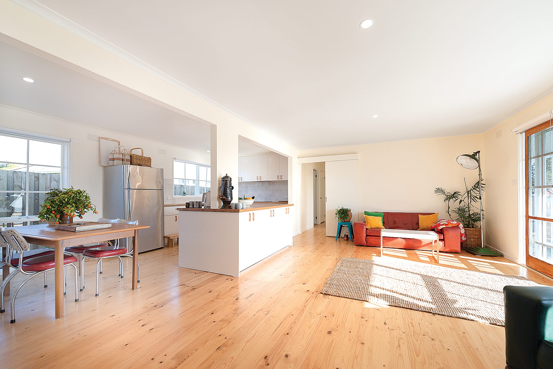 The colonial-style property has been beautifully renovated, featuring polished floorboards throughout that give the interior a sleek and modern feel.