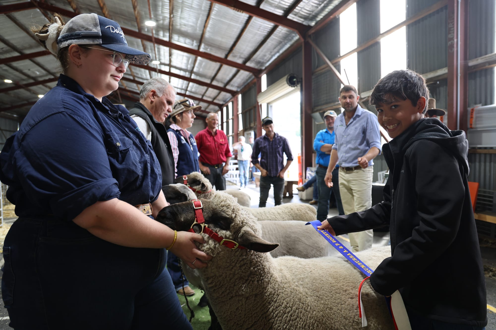 In the sheep, wool and poultry pavilion Hampshire Downs rams were being judged when the Sentinel Times walked through with 1st place going to Sophie Ingram for a young Hampshire Down ram from the Akuna Sheep Stud at Nerrena.