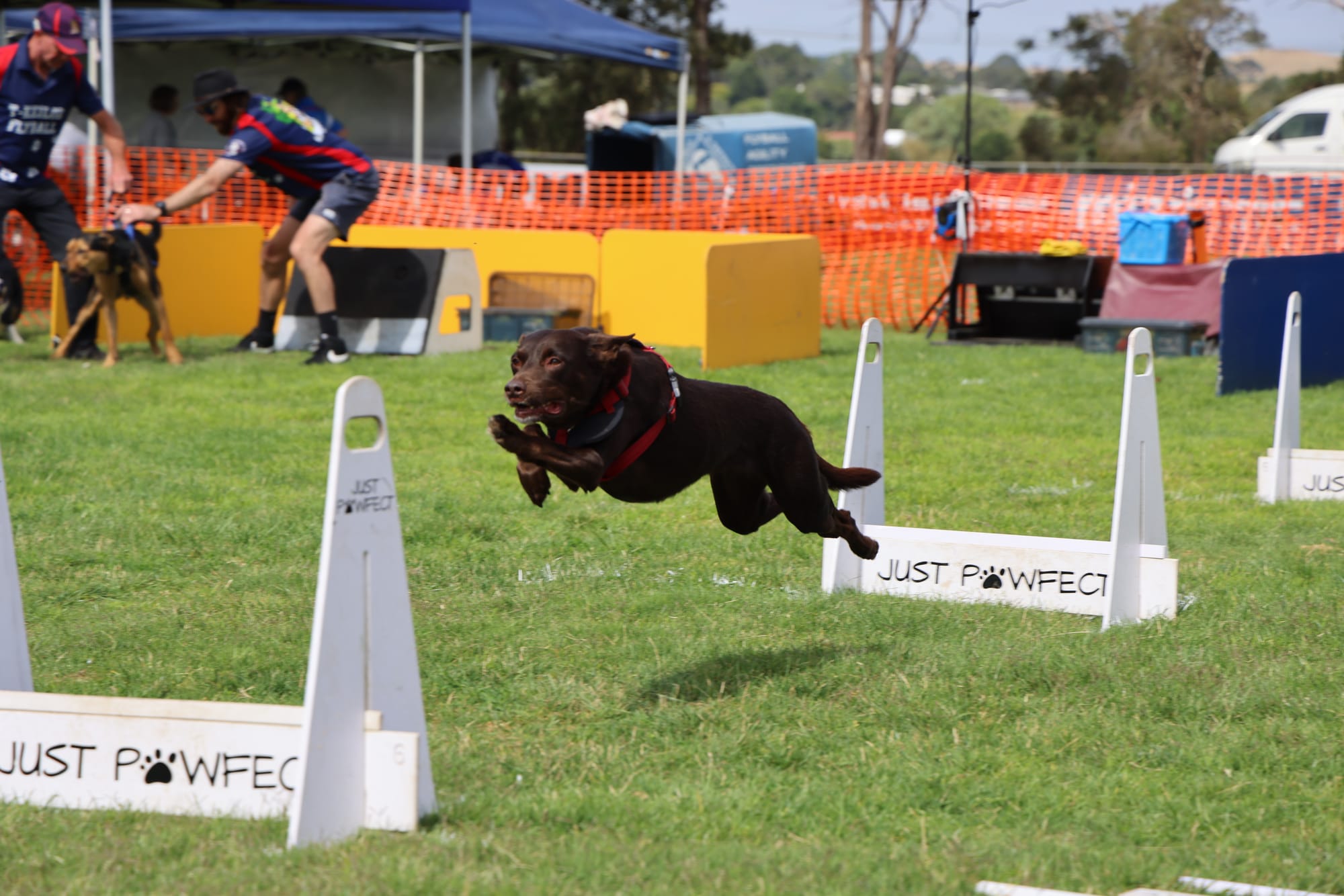 Border Collie Rydor and Rozz from team Berwick Blaze were flying in the flyball competition along with Kelpie Twiggs and tiny Gus from the Keilor Obedience Dog Training Centre.