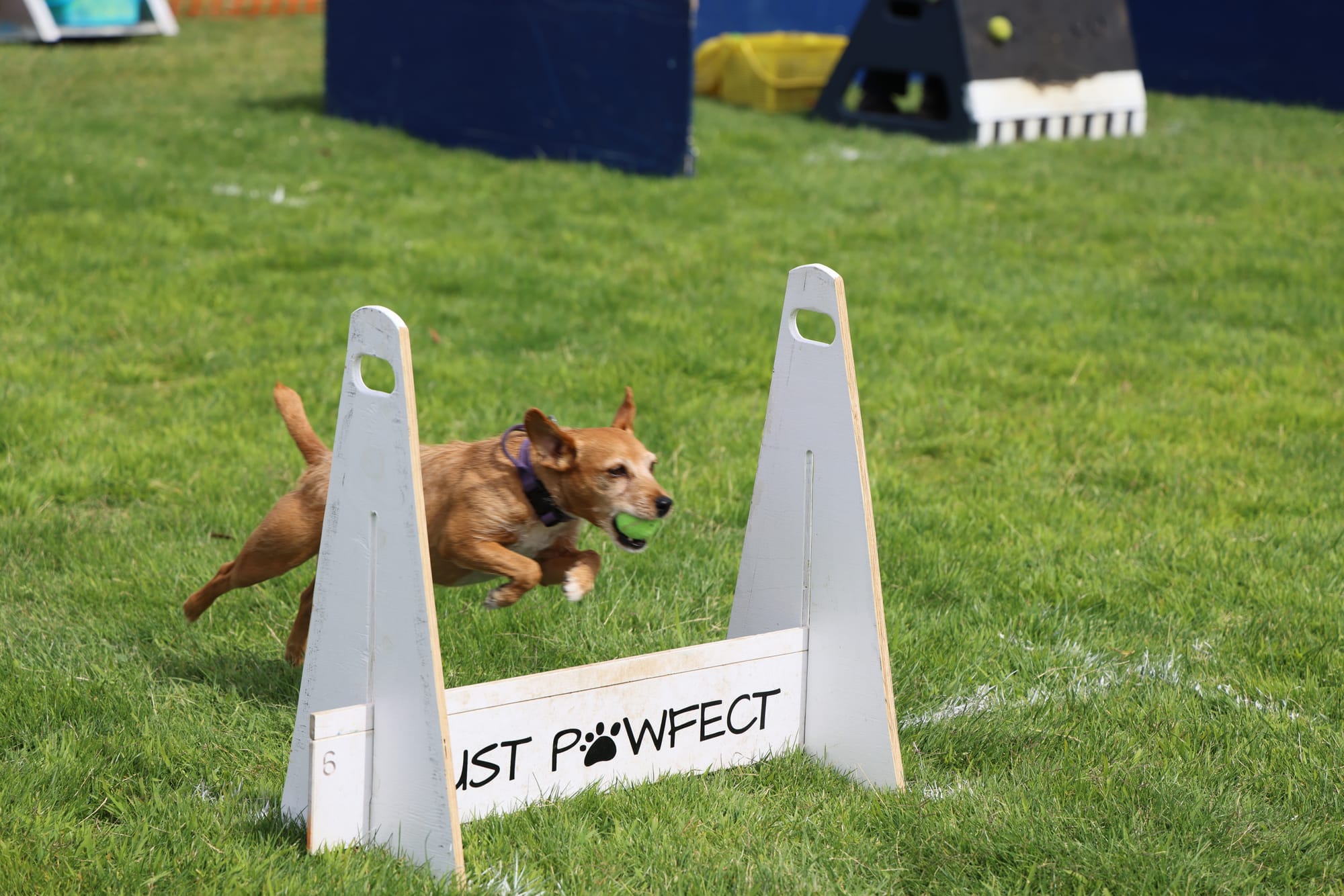 A highlight of the sports demonstrations on the oval is always the popular fly ball contest between dogs of all sizes and abilities.