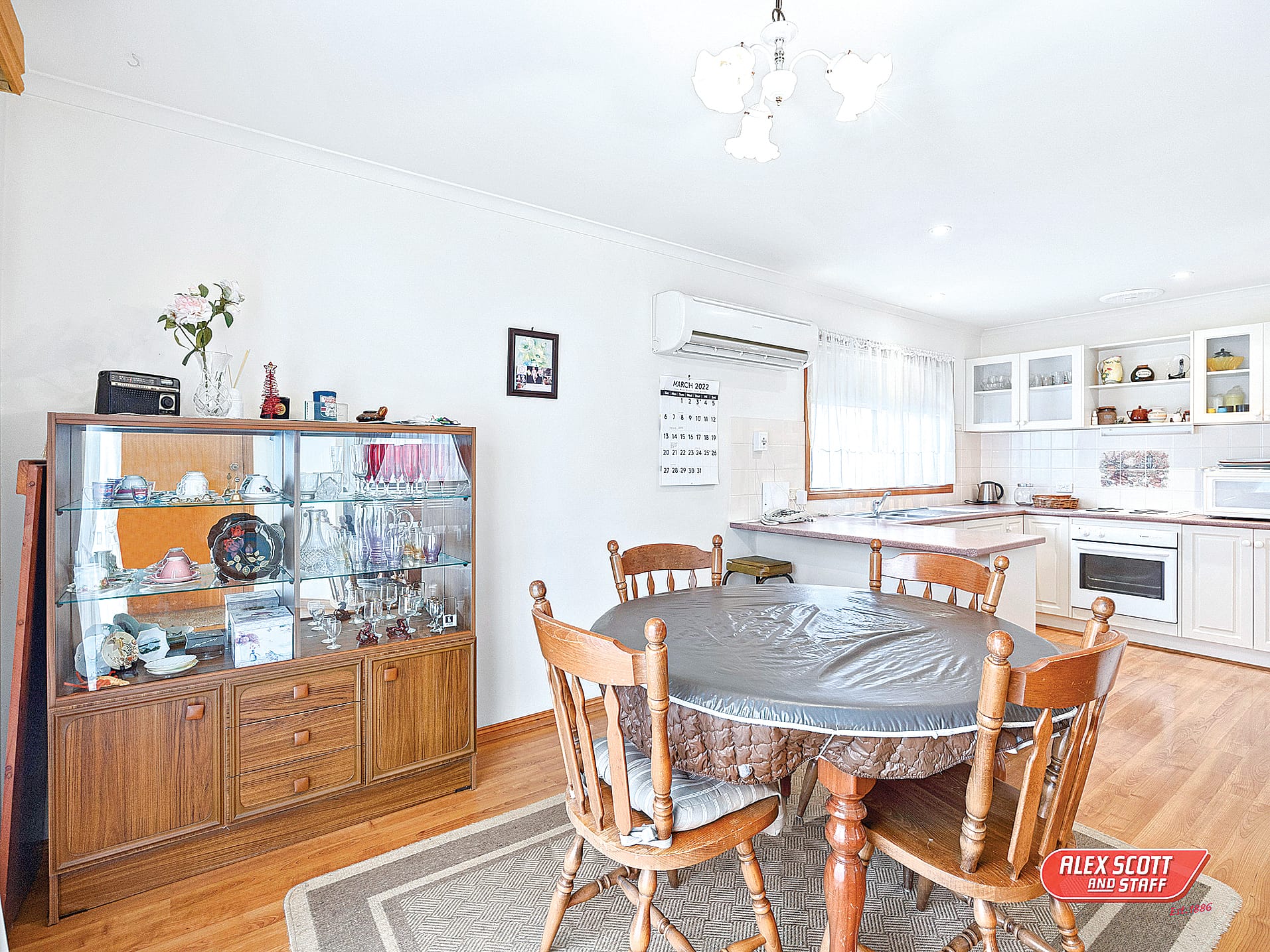 The home is very well maintained with the kitchen featuring cream timber cabinetry, electric oven and cooktop and overhead cupboards with glass fronts. The living area is carpeted while the dining area features floating floor and is serviced by a reverse cycle air conditioner, all three bedrooms are of standard size with built in robes and carpet, the bathroom includes a single shower, small vanity and under window bath with the separate laundry room completing the home.