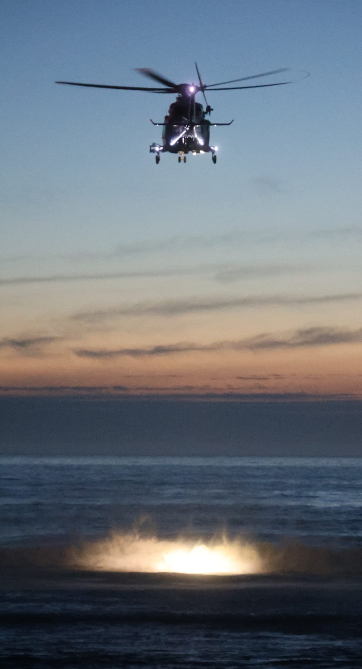 The rescue helicopter arrived shortly before dark and had enough time to make several sweeps of the beach and the waves, concentrating in the area of the rocks, in front of the iconic trestle bridge, later using their search light but were unable to locate the missing man.