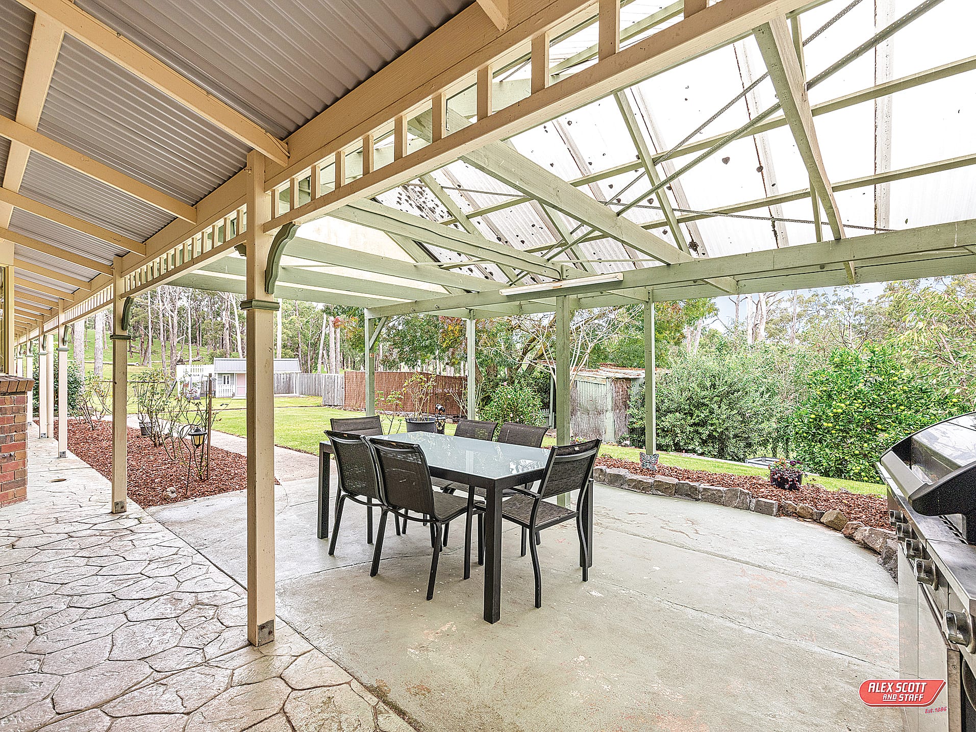 Step outside via the glass sliding doors to discover the outdoor undercover entertaining area, perfect for hosting gatherings. The verandah encircles the home, providing a charming touch. Also outside, you’ll find a shed measuring 8m x 6m, a double carport (7m x 6m), a single carport, a woodshed, a chook shed, and adequate water by way of three large water tanks. The property also offers small grazing paddocks, perfect for those looking to keep animals.