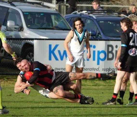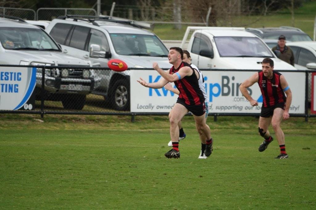 And, less than a minute later, Travis Krause smothered a defensive kick by Maffra full back James Huts, and Troy Harley was there to pounce, returning the favour to Krause who strolled in for another.
