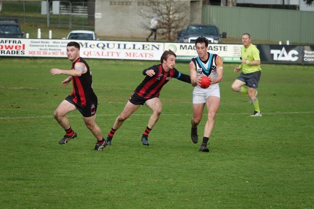 Darcy Brosnan, back into the Seniors and likely to hold his spot after a great game, hit Troy Harley laces out to put the Power back in front. Then two terrible defensive mix-ups by Maffra, in Wonthaggi’s scoring zone, resulted in two more.