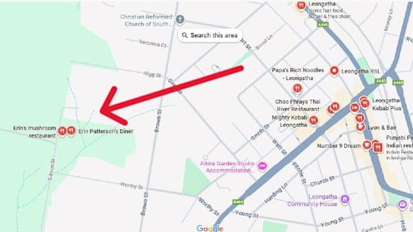 Also, on Google Maps, an apparently approved administrator of that site has posted the location of two restaurants in Gibson Street, Leongatha – one called ‘Erin’s Mushroom Restaurant’ and ‘Erin’s Mushroom Diner’.