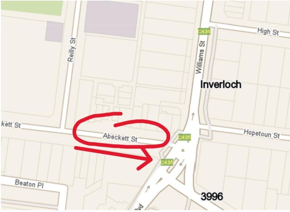 The bottom end of A’beckett Street has been closed off between Reilly Street and Williams Street while investigation and repairs are affected.