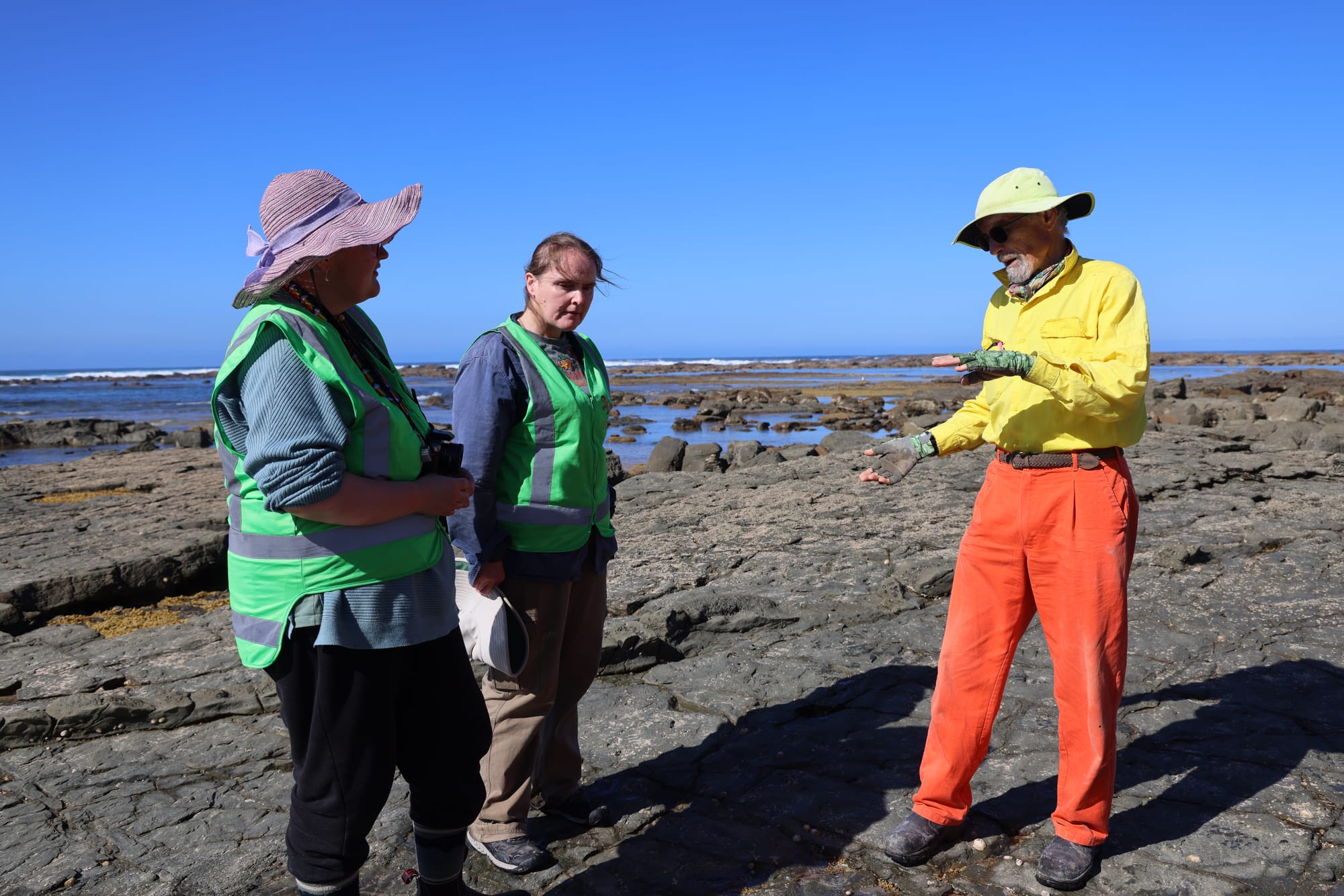 The bones and teeth of fossilised animals can be very small so when the tide forces the volunteers off the beach, they carry the remaining big chunks of rock up the steep cliffs so t it can be broken down in the back yard of the dig house until it is sugar-cubed size.