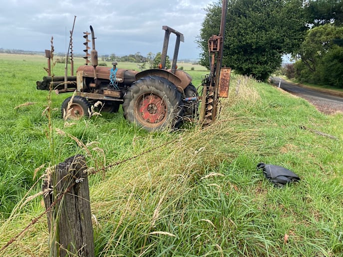 “The driver of the car left the scene on foot. He then threatened the driver of a vehicle in a nearby paddock with a small knife, stealing that vehicle which then collided with a tractor on the driveway of the property.