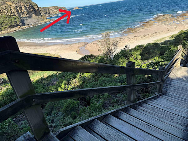 Shack Bay is a beautiful, quiet, little coastal location south-west of Eagles’ Nest (arrowed) and Inverloch.