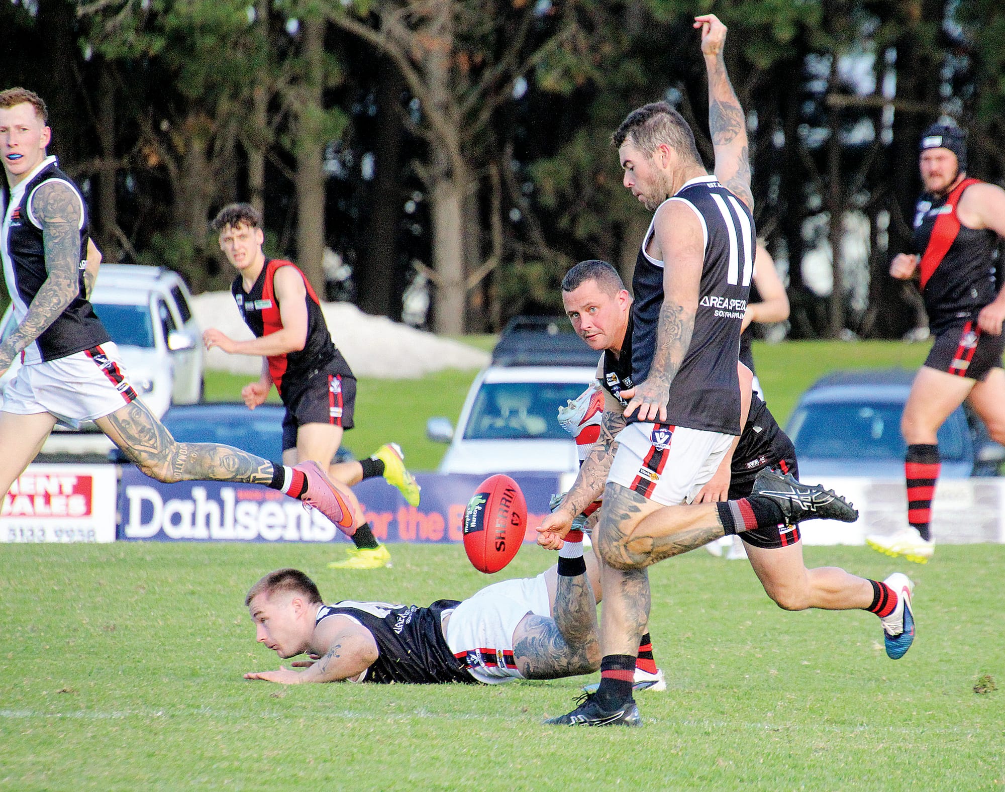 The man of the match was Travis Stewart, who competed in the ruck for Nyora most of the day and kicked four goals.