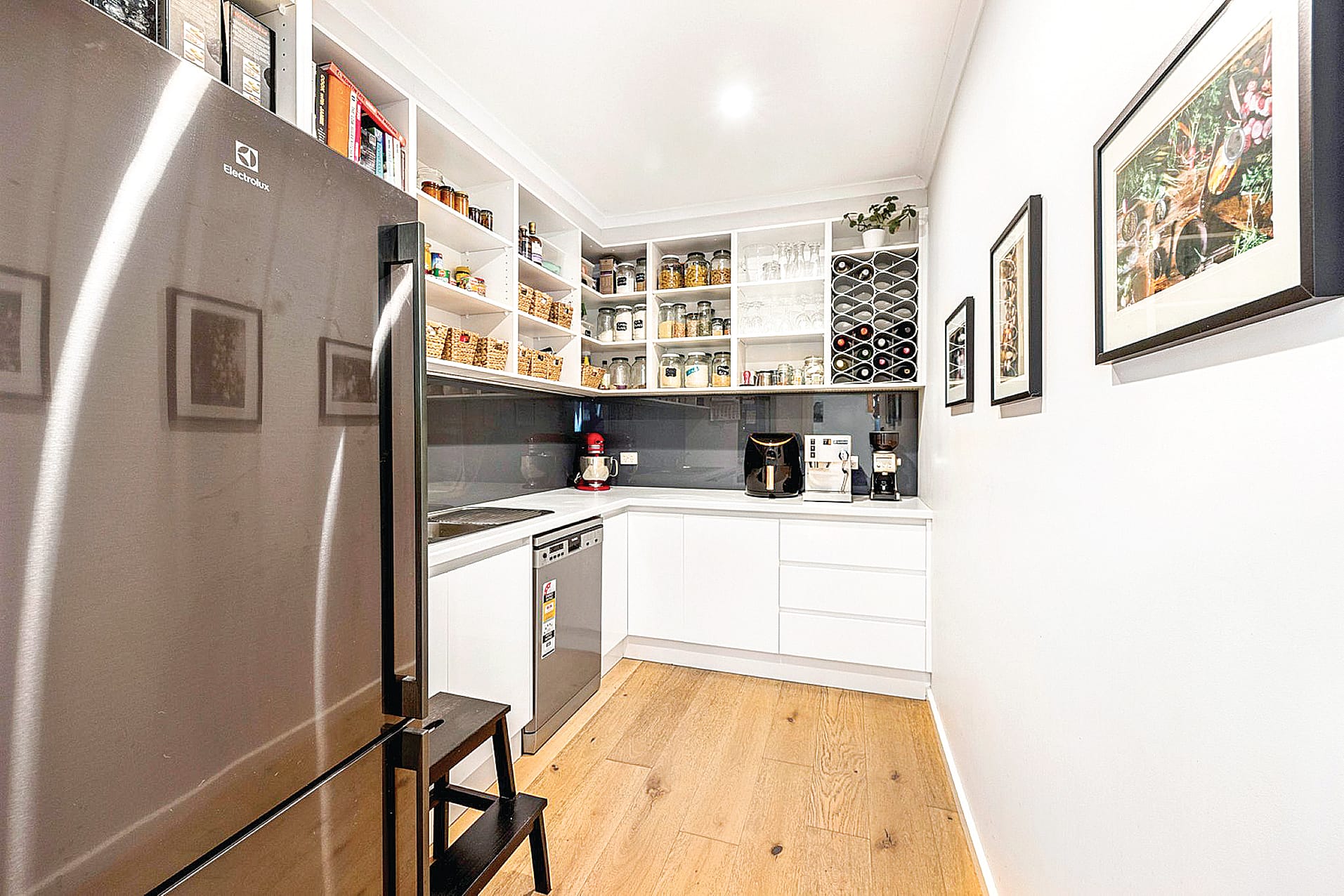 The kitchen offers electric and gas appliances, generous bench and storage areas, a breakfast bar and a large butler’s pantry.