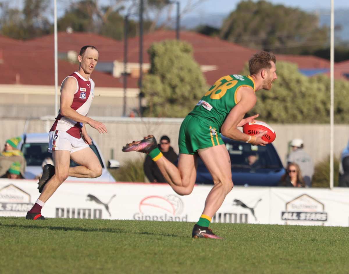 But kicking with the aid of a blustery wind, it was Leongatha which took to initiative with a goal to Jenson Garnham, the first of seven on the day, and then Patrick Ireland, with one of those kicks from the boundary that tells supporters and teammates that their side is on song.