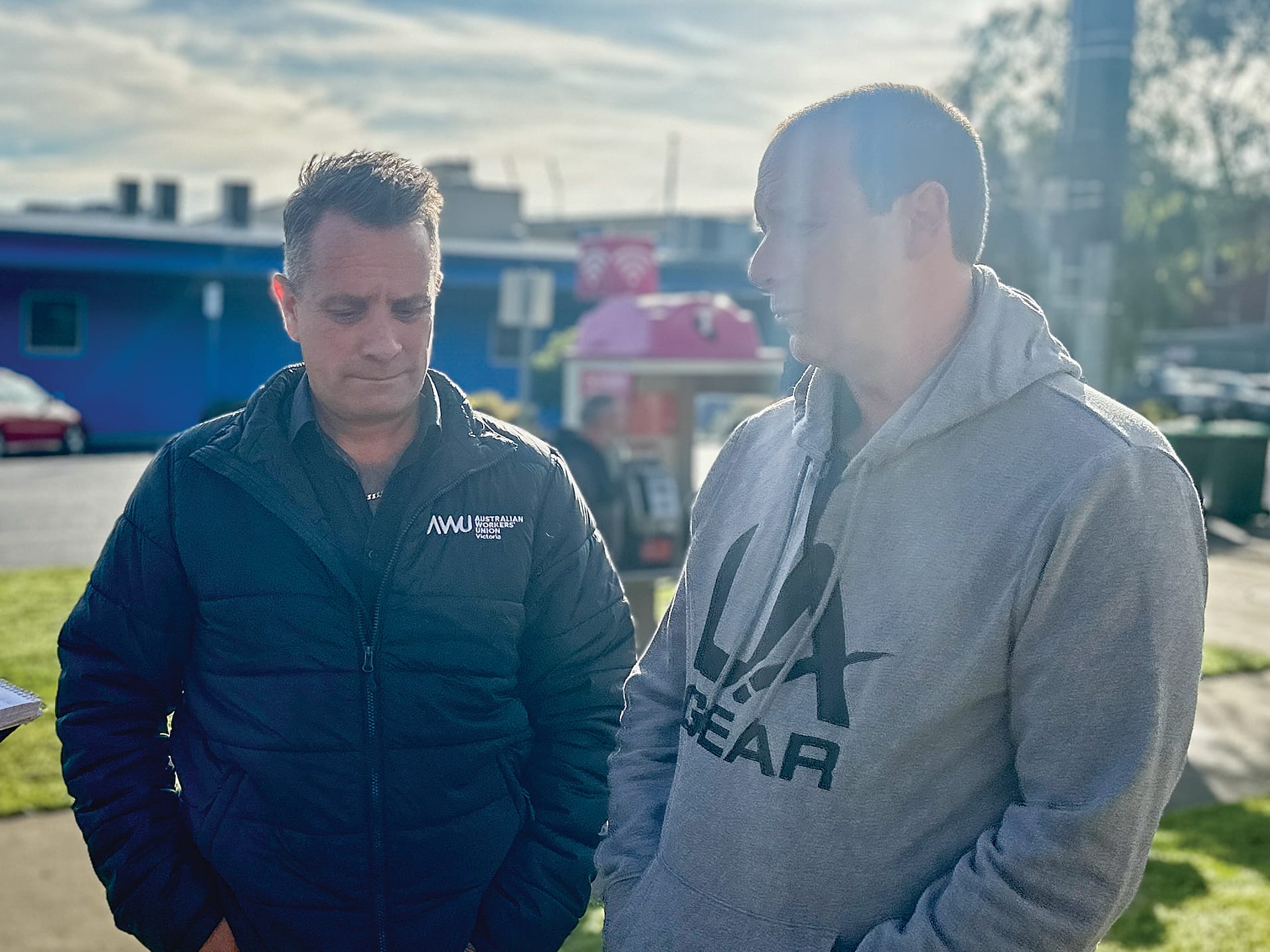 The men were supported in court by officials of the Australian Workers Union as the case against their former employer was heard.