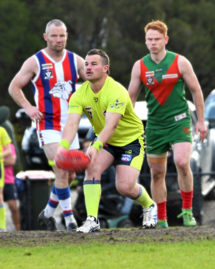 He shared the occasion with girlfriend Gemma Cook who was one of the boundary umpires and his goal umpiring father Brian, with the trio part of the contingent of officials overseeing the senior match between Dalyston and Tooradin-Dalmore.