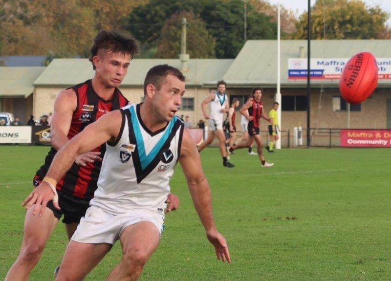 Danny Butcher was running hot for Maffra and should have opened their account when he received a nice pass from Ben Brunt. Good team defence by Reid, Bray and Knowles set a pattern for Power, Bray also combining with Jack Blair but Daniel Bedggood also had a clear chance that came to nothing.
