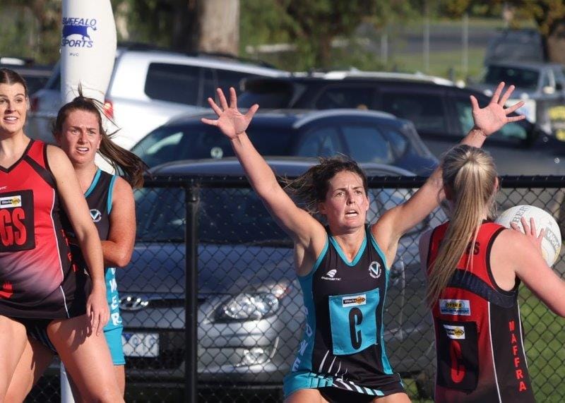 They simply didn’t appear to be able to penetrate the super tight Wonthaggi defence, with pressure on the passes coming in but Maffra got the first centre break of the third quarter and within seconds had their opening goal through Alex Carr.