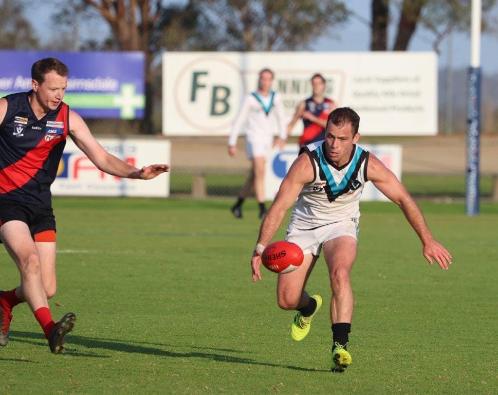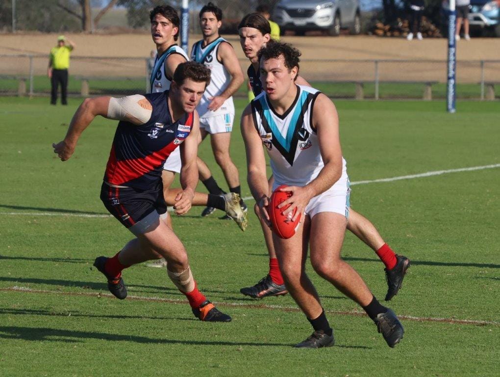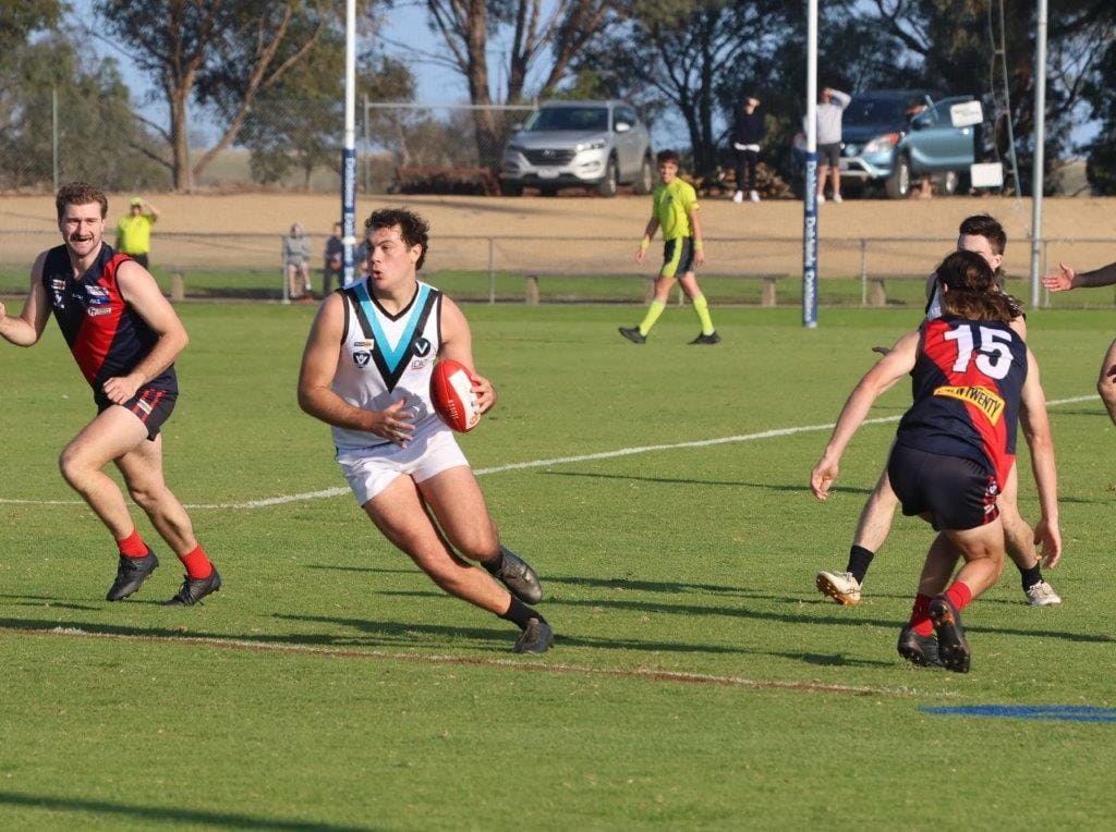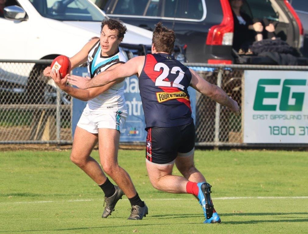 While Mabilia constantly bobbed up in general play on Saturday, he featured in a couple of eye-catching goals as Wonthaggi broke clear of their worthy opposition Bairnsdale after half time, one when he played ‘kick to kick’ with the coach before goaling and another where he side-stepped a tangle of Redlegs at half forward to kick truly at the other end.