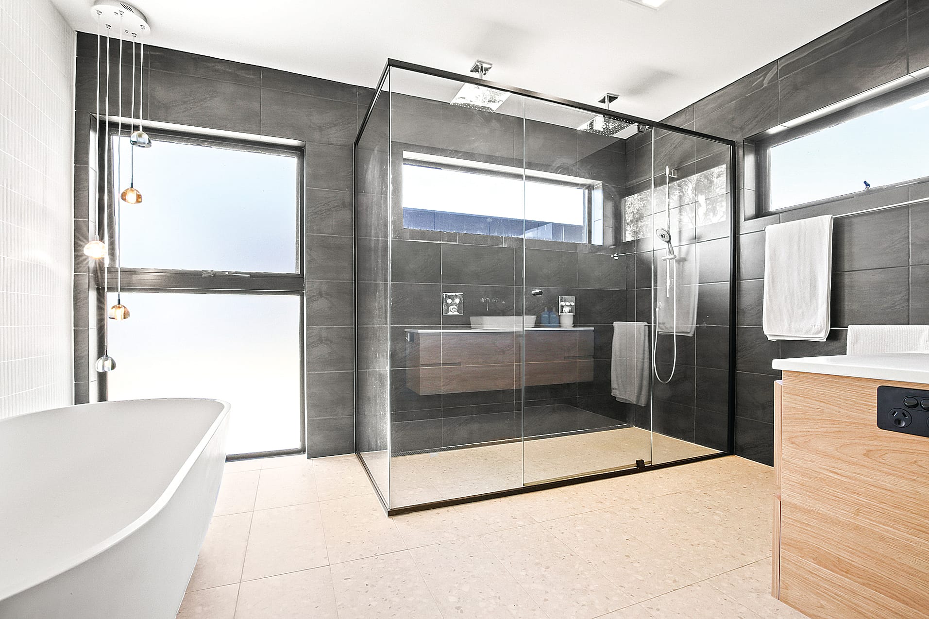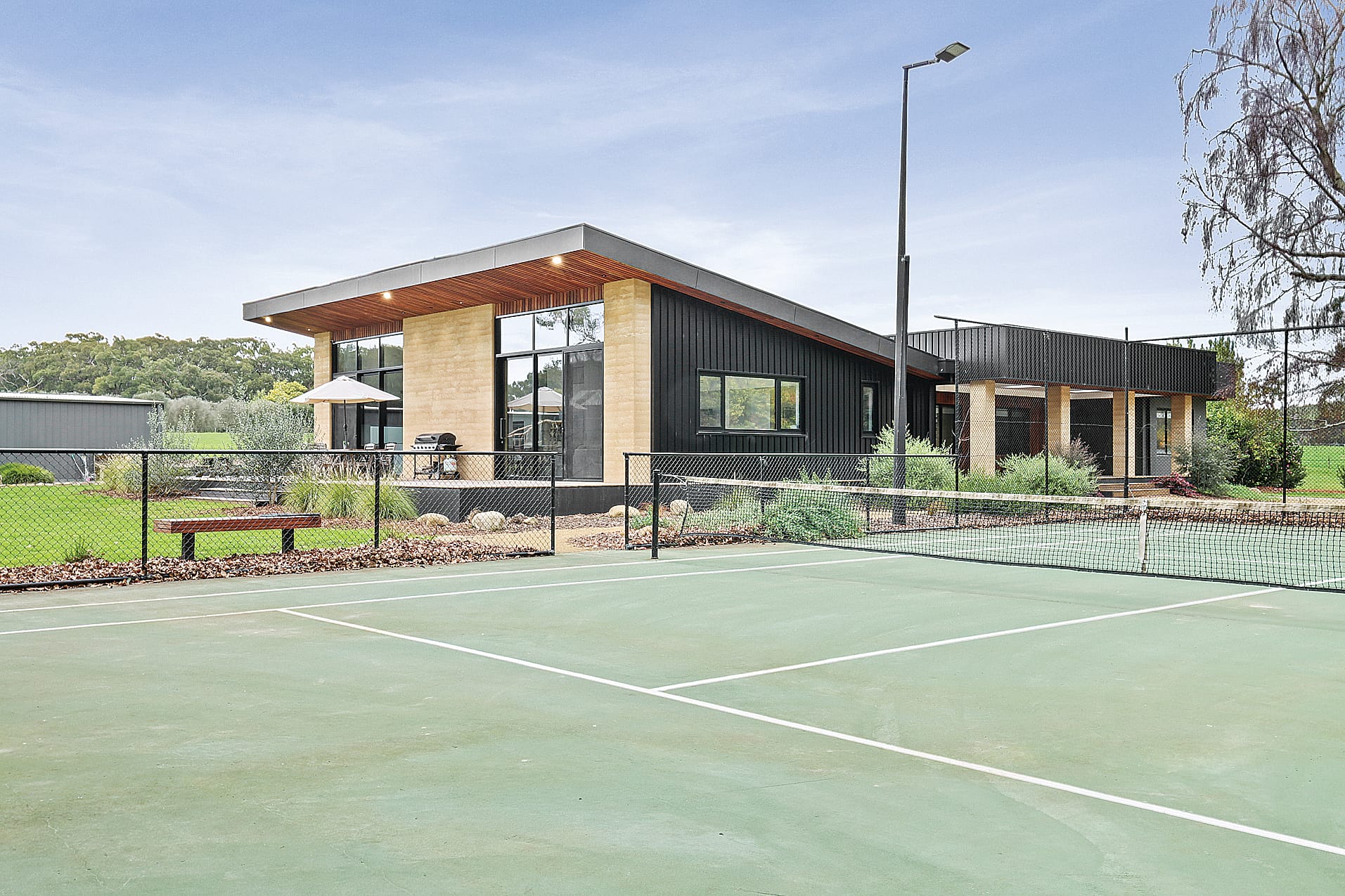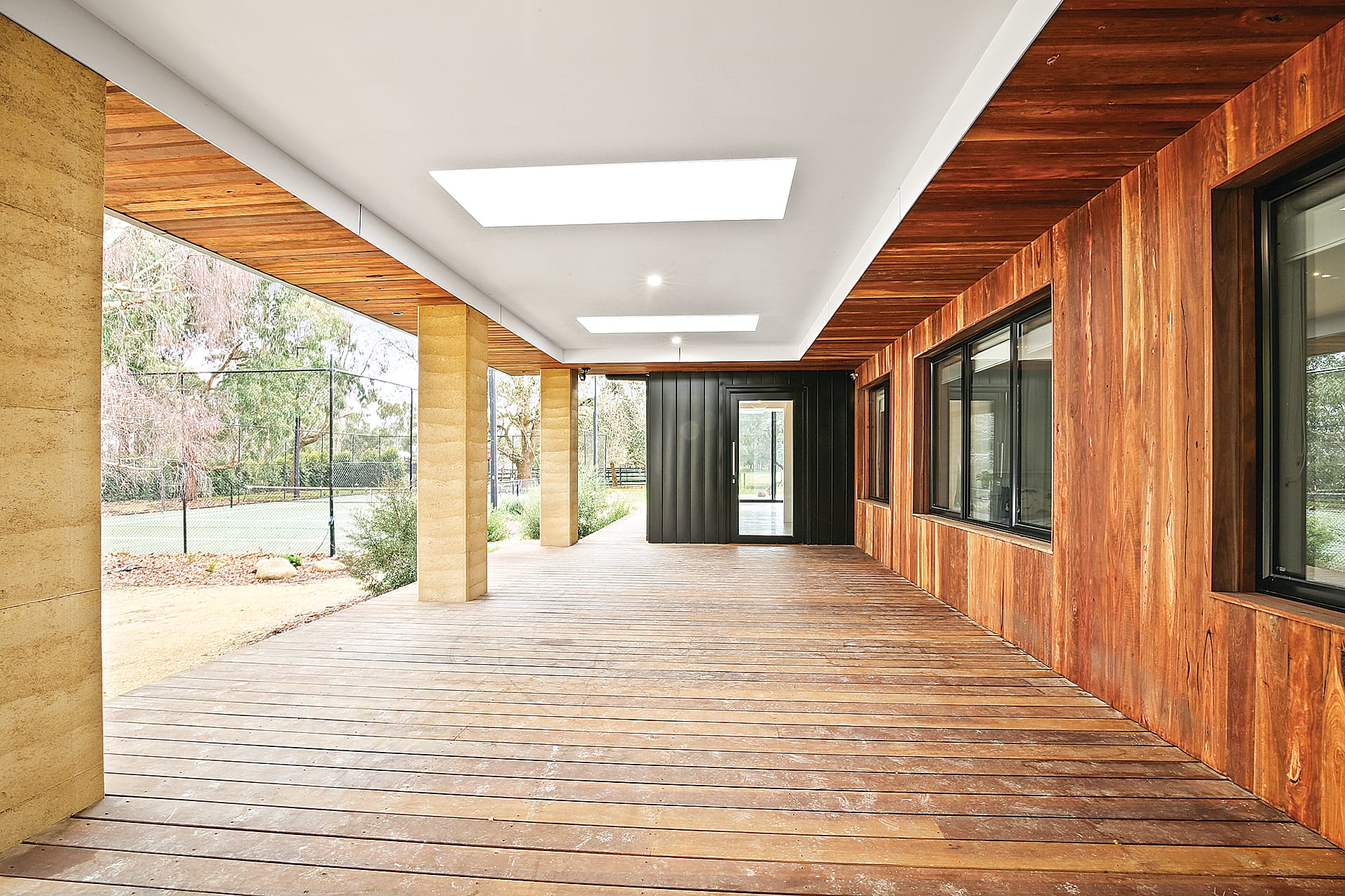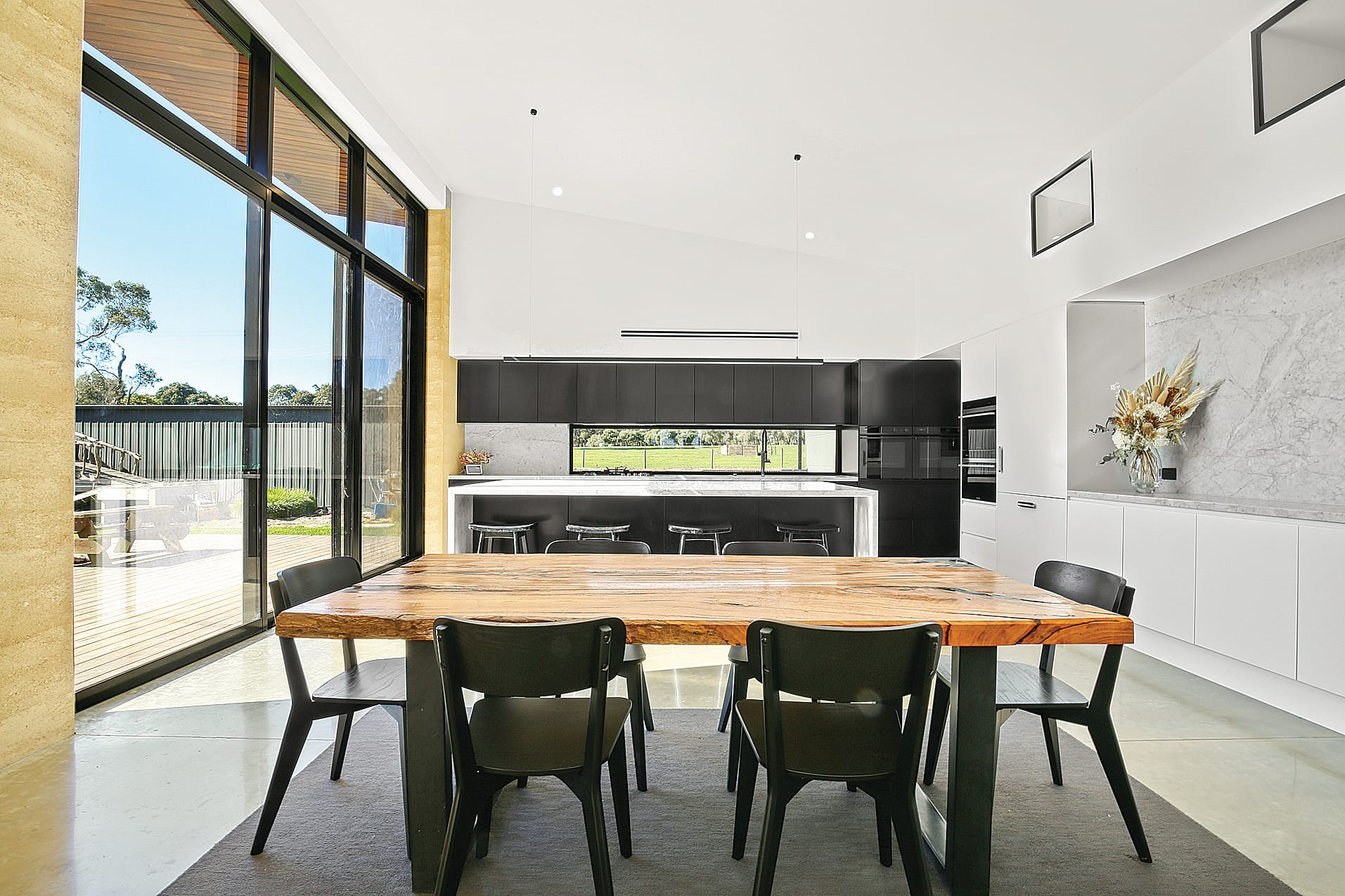 Embrace the natural light along with raw elements like rammed earth walls, burnished concrete floors, and Blackbutt timber floors.
