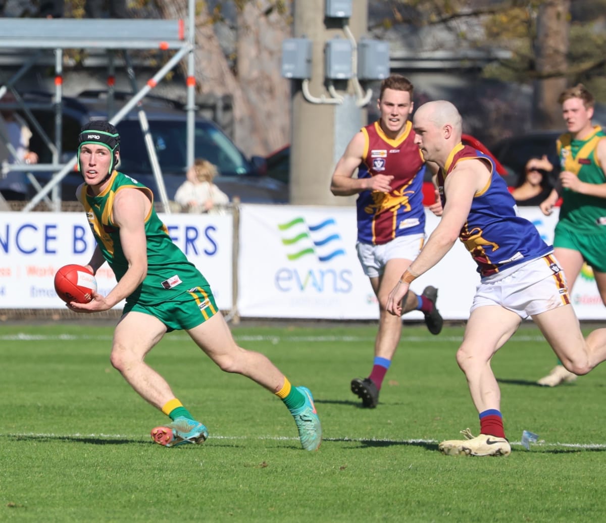 Ever alert on the Moe forward line, Harrison Pepper finally got the Lions’ goal tally ticking over with his first five minutes into the second half, the result of a jumper tug by Leongatha’s Mitch Bentvelzen, before getting a pass over the top from Jacob Balfour for his next, and Moe’s second in a minute.
