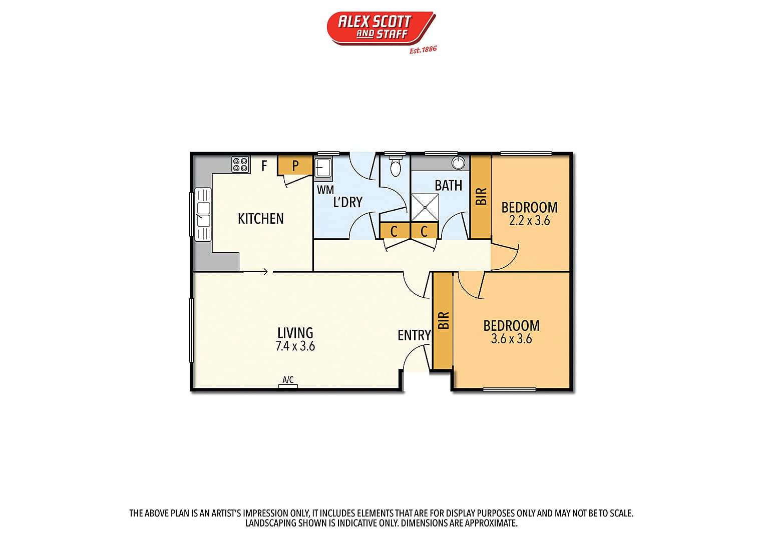 Large lounge, spacious kitchen, two large bedrooms, central bathroom, and laundry.