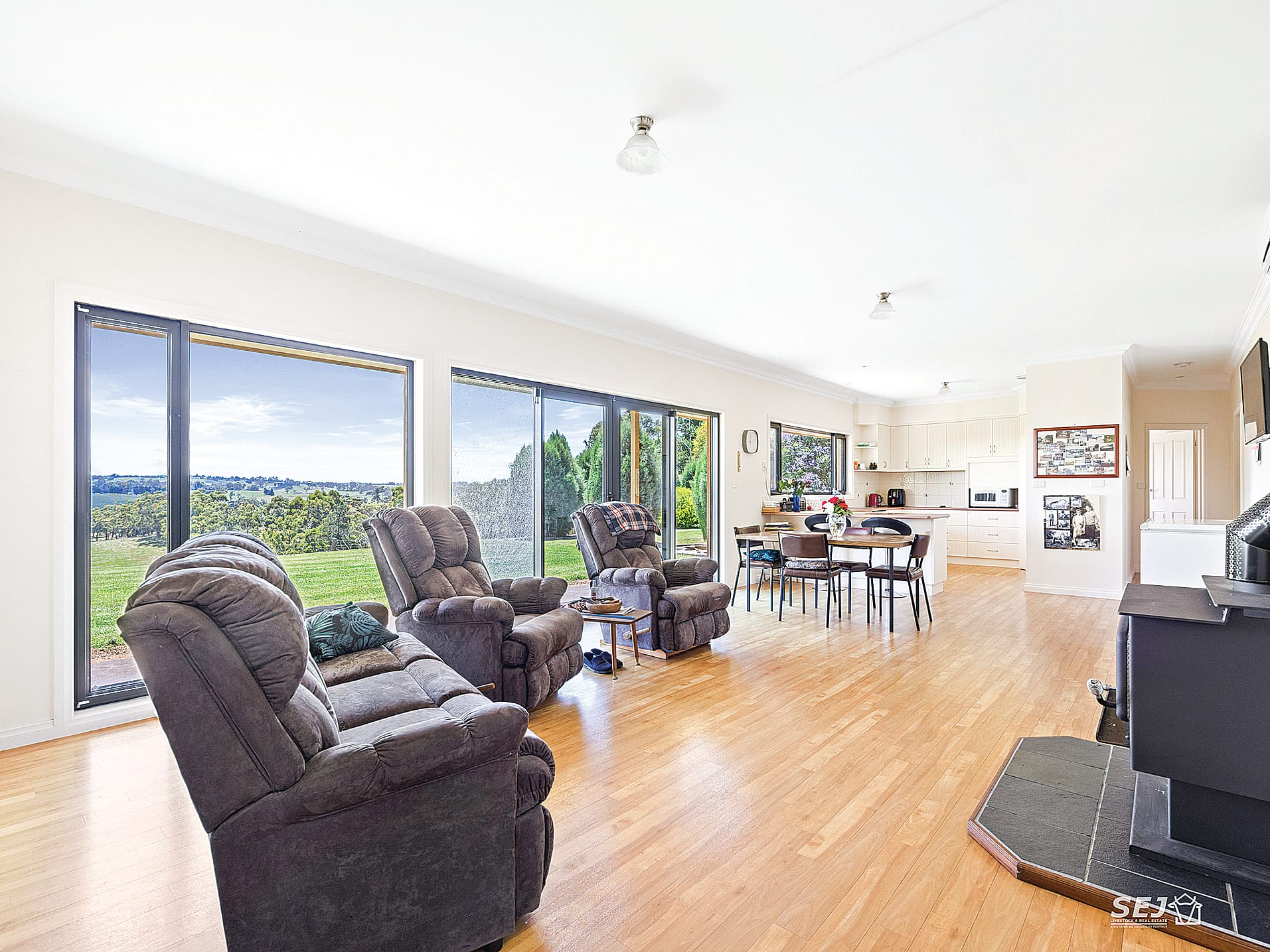 • Sliding doors opening out to the veranda, garden and farmland views