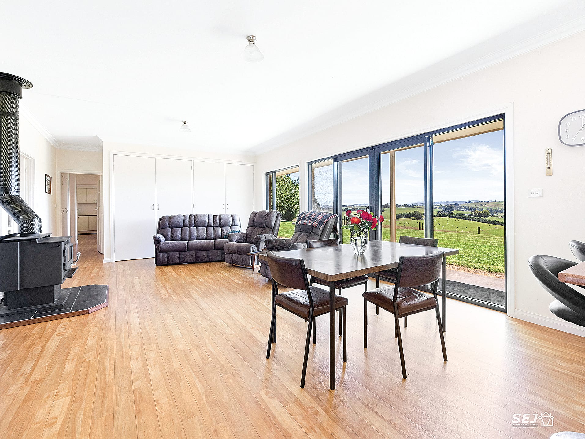 The spacious sized home is well suited to families, even dual occupancy or perfect if you work from home, with plenty of space and lovely rural views.