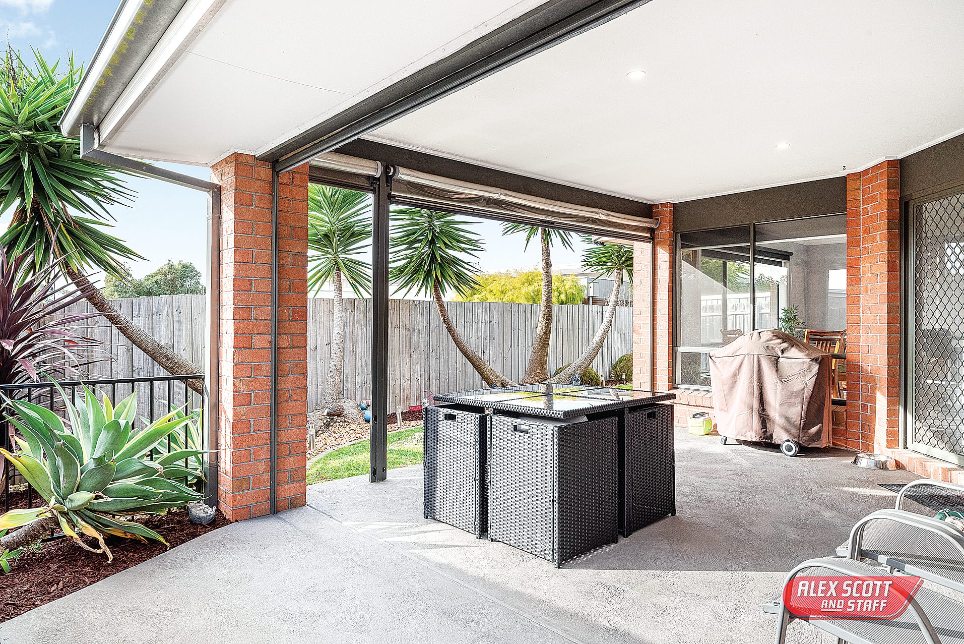 The living area opens out to a fully enclosed alfresco area with high quality sliding cafe blinds and an outdoor heater, providing a wonderful outdoor area that can be used all year round.